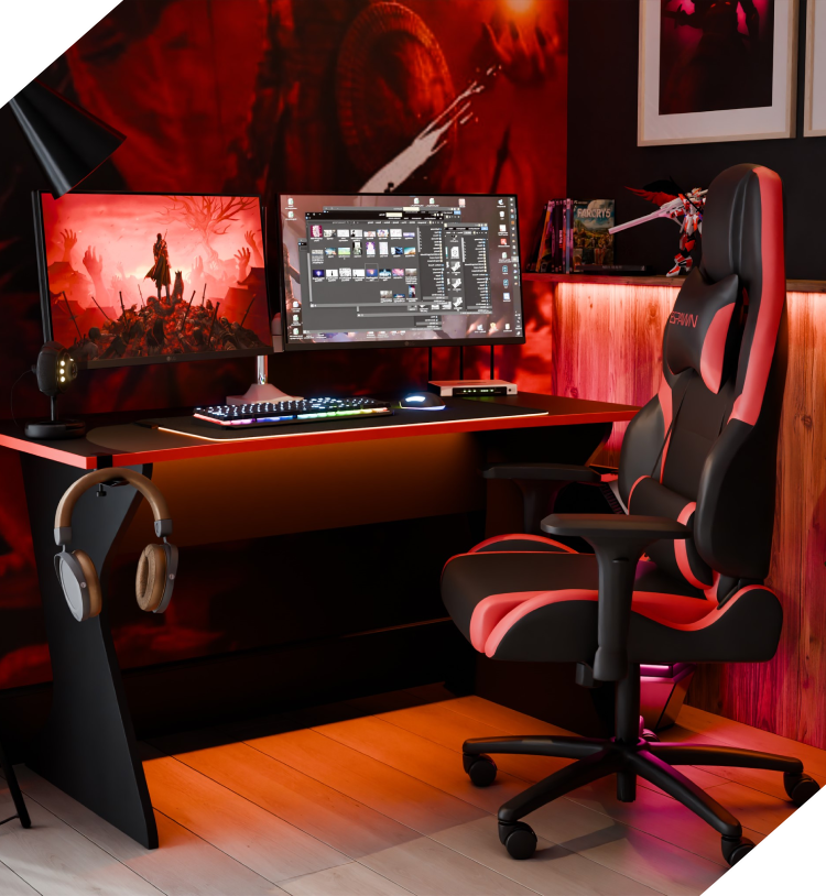 - Szeroki blat pomieści Twój gamingowy ekwipunek oraz stworzy komfortowe stanowisko do efektywnej pracy.