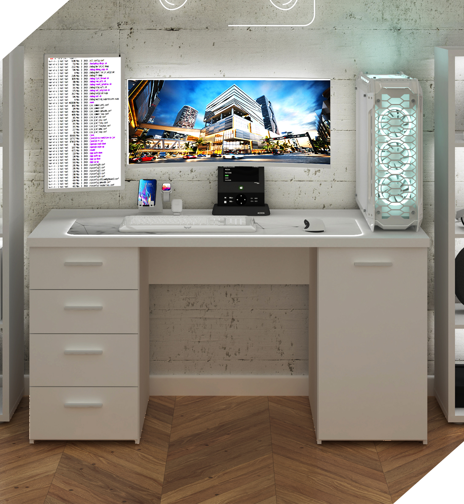 ARCALIS926 stworzone nie tylko dla graczy, biurko to również doskonałe rozwiązanie dla osób pracujących z domu. Zapewnia wygodną powierzchnię do pracy, na której można łatwo zagospodarować miejsce na blacie równocześnie mając wszystko co niezbędne pod ręką. Wybierając biurko gamingowe białe z szufladami skoncentrujesz się na swoich obowiązkach zawodowych, ciesząc się jednocześnie estetycznym otoczeniem.