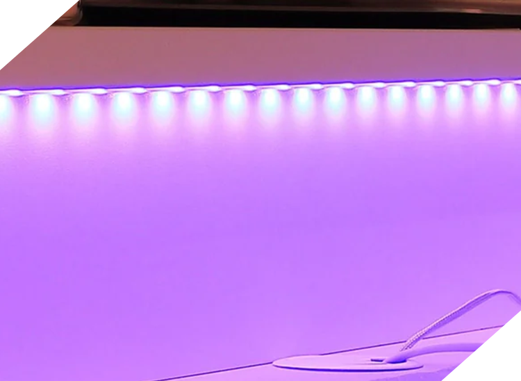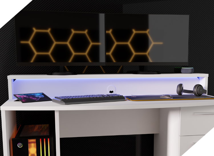 - Do zestawu z biurkiem załączone jest oświetlenie LED, które umożliwia zmianę kolorów i ich intensywności za pomocą pilota.