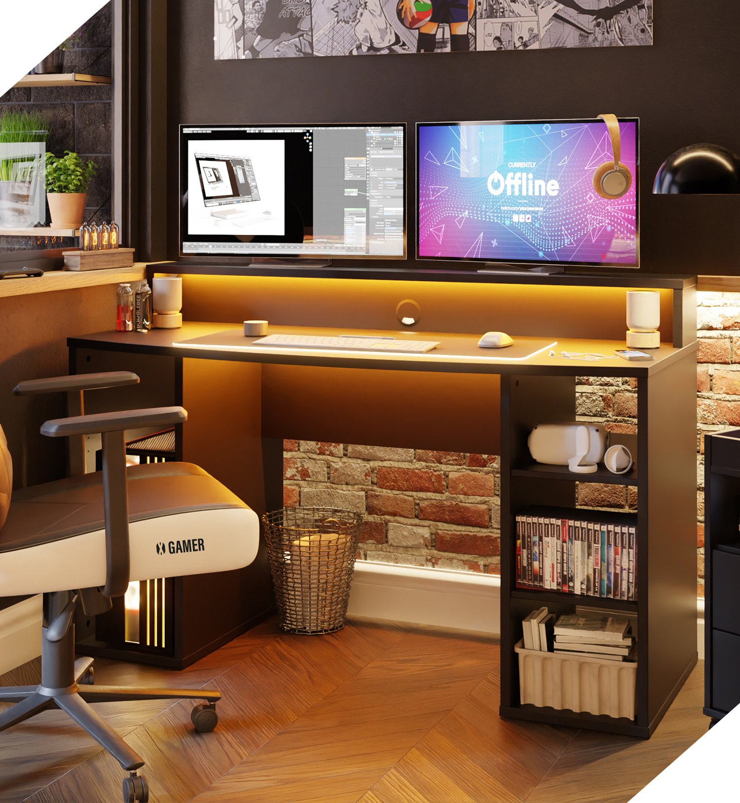 Chcesz stworzyć cały gaming room? Wybierz pozostałe meble z naszej oferty. Łatwo dopasujesz je desigem oraz skompletujesz zestaw idealny. Jeżeli potrzebujesz inspiracji, udostępniamy pomysły na wystrój oraz aranżację w zakładce INSPIRACJE. Jeżeli potrzebujesz pomocy w wyborze, skontaktuj się z nami na czacie, nasi konsultanci chętnie pomogą z wyborem najlepiej dopasowanym do Twoich potrzeb.