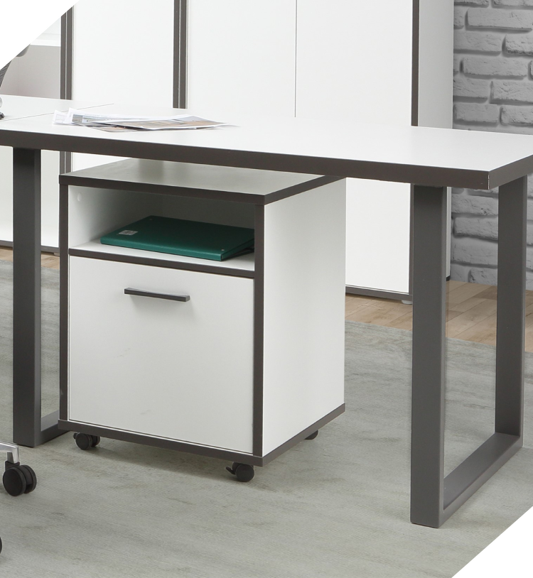 Biurko młodzieżowe LUNARTEK211 - biało-szare cechują jego minimalizm i uniwersalność, które sprawiają, że biurko odnajdzie się we wnętrzach urządzonych w niemalże każdym stylu, tworząc z nimi spójną całość.
