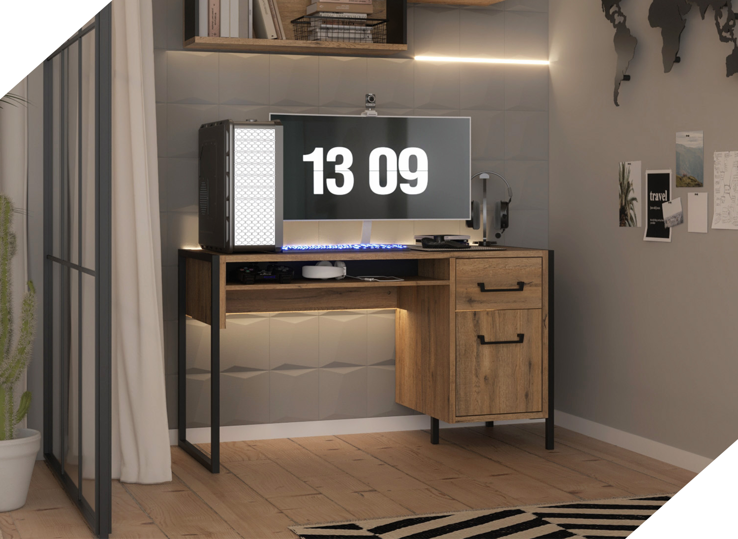 Biurko 130x60 zostało wyposażone w szafkę oraz szufaldę, które umożliwiają utrzymanie porządku i organizację przestrzeni roboczej. Możesz łatwo poukładać i posegregować swoje rzeczy, dzięki czemu wszystko co jest Ci niezbędne, zawsze będzie pod ręką.