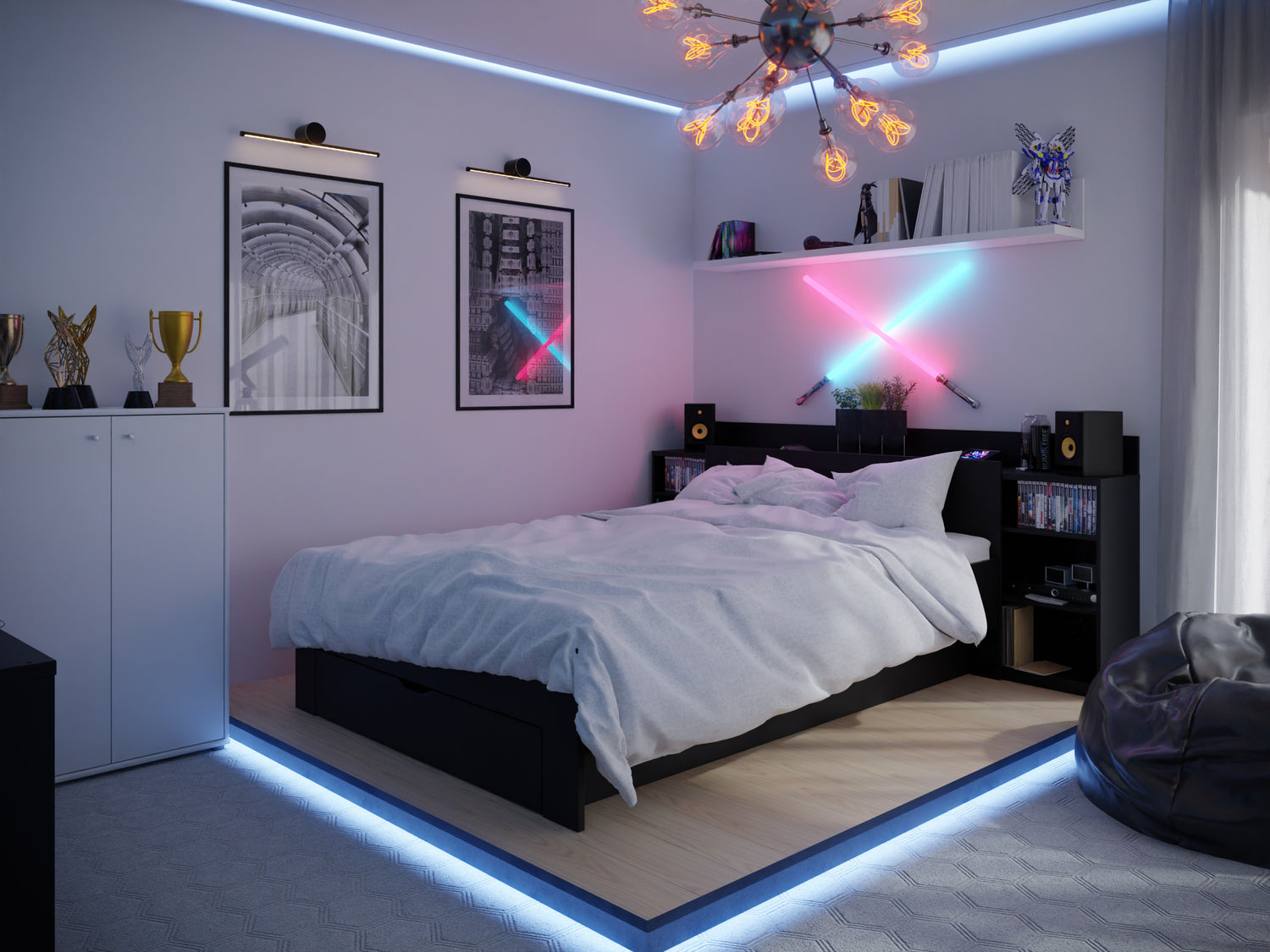 chill ewentualnie ulubioną serię książek? W czarno-białym pokoju dla chłopca przygotowaliśmy na to specjalny kącik! Wyposażyliśmy go w łóżko NEOWISE3141 – czarne, z nim na pewno będzie Ci wygodnie!