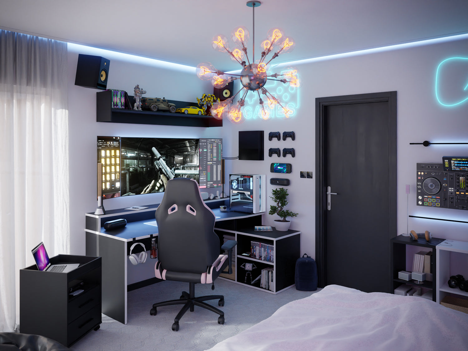 niewinnością, ale czy można zmienić jego kojarzenie, na takie związane z idealnie dopasowanym do Twoich potrzeb pokojem gamingowym? Jasne że tak i pomoże nam w tym czarno-biały pokój dla chłopca! Białe ściany w tym pomieszczeniu i biurko gamingowe SUPERNOVA 214 – czarno białe już na pierwszy rzut oka, pozują na idealny czarno-biały duet. Nie zapominajmy również o kontenerku SUPERNOVA211 oraz półce SUPERNOVA01 czarnej, które nadają całości, dodatkowy