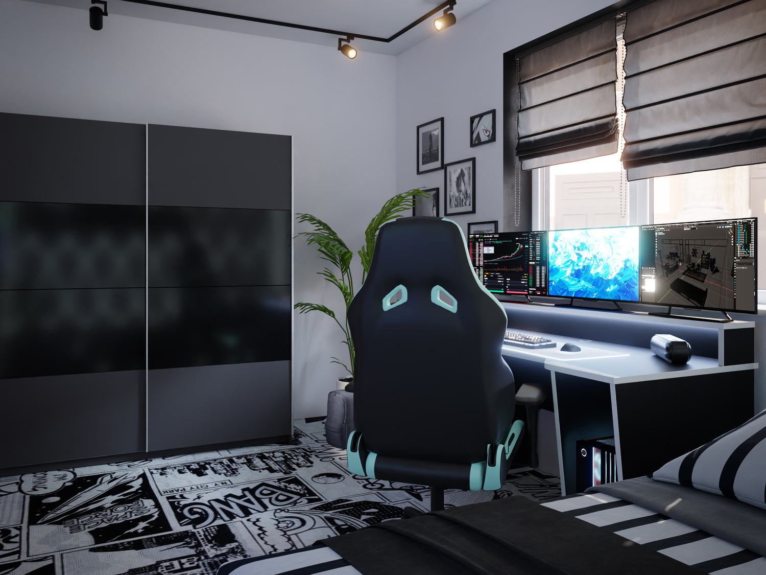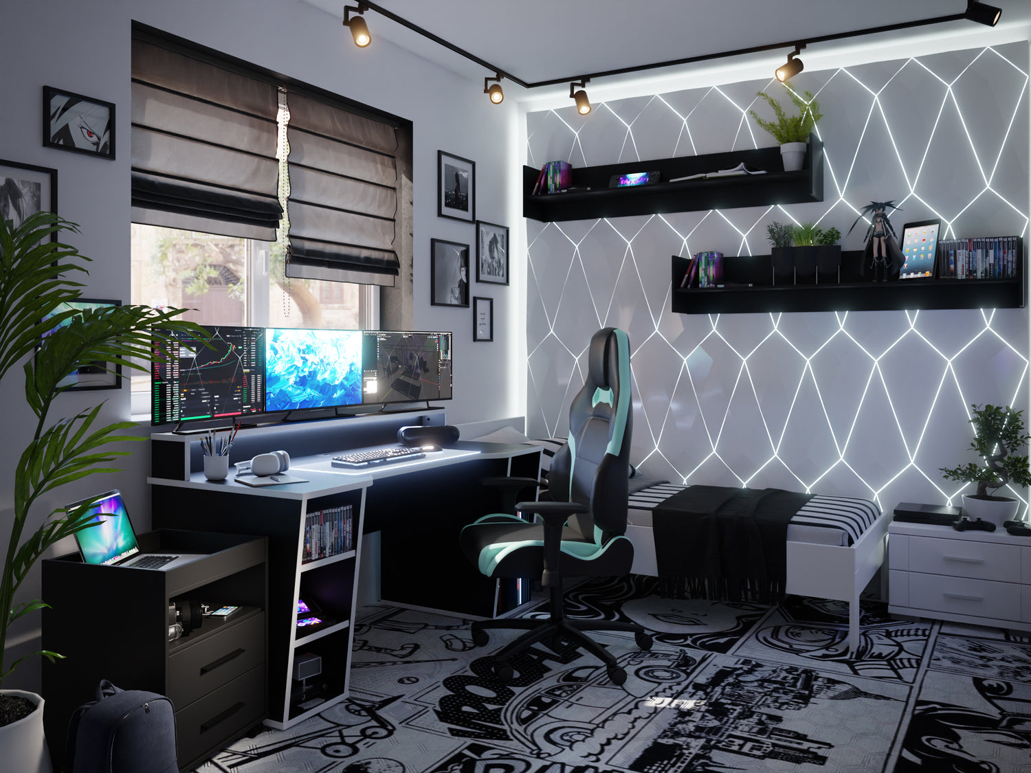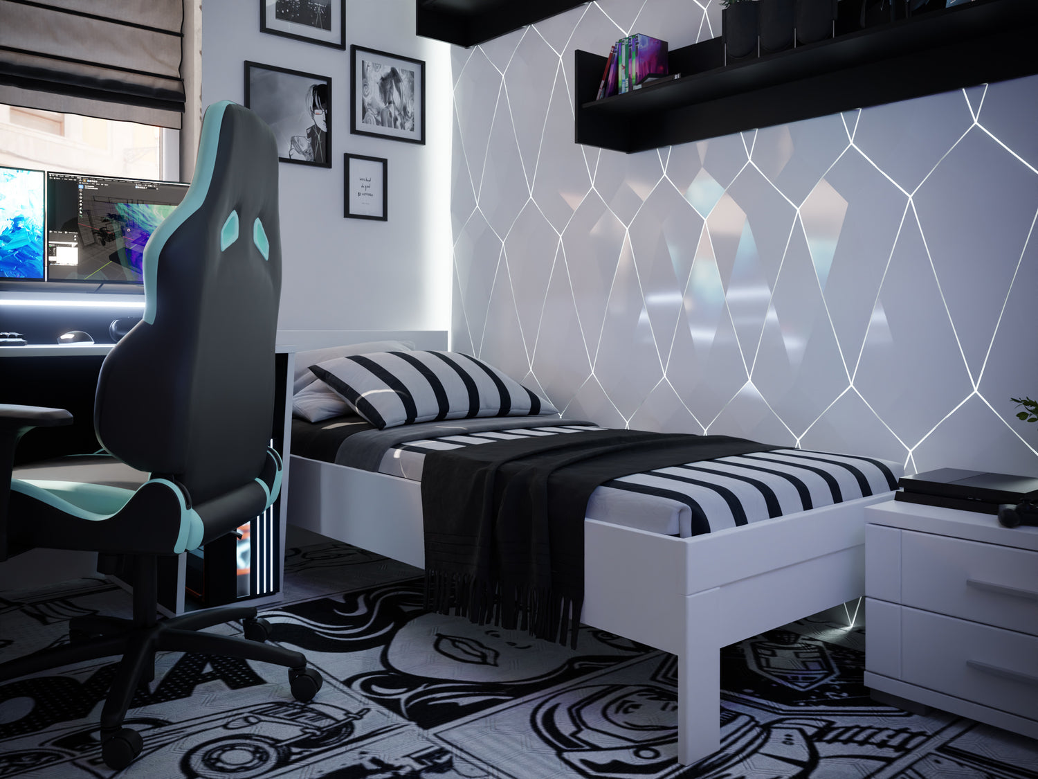 przytakniemy. Sercem czarno-białego pokoju młodzieżowego, który ma służyć do gier i nauki niezaprzeczalnie jest biurko. No właśnie, a jeśli biurko to biurko gamingowe SUPERNOVA211 – czarno białe. Wygląda jak wyciągnięte prosto z kreskówki, ale to nie wszystko!