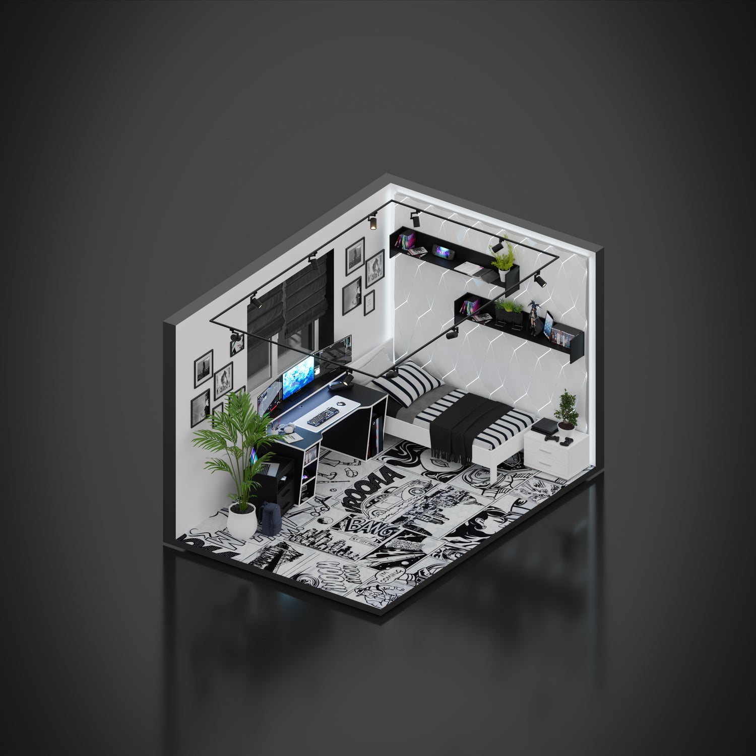 szuka większość kolekcjonerów? Gratulujemy! Chyba trzeba znaleźć dla niej wyjątkowe miejsce prawda? Naszym zdaniem w czarno-białym pokoju młodzieżowym, wyeksponujesz ją na półce SUPERNOVA01. Możesz tam również ustawić zdjęcia ze znajomymi z gildii!
