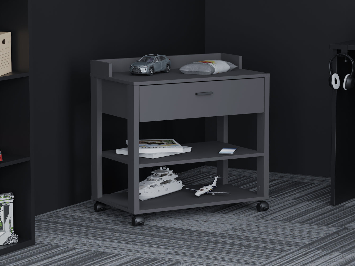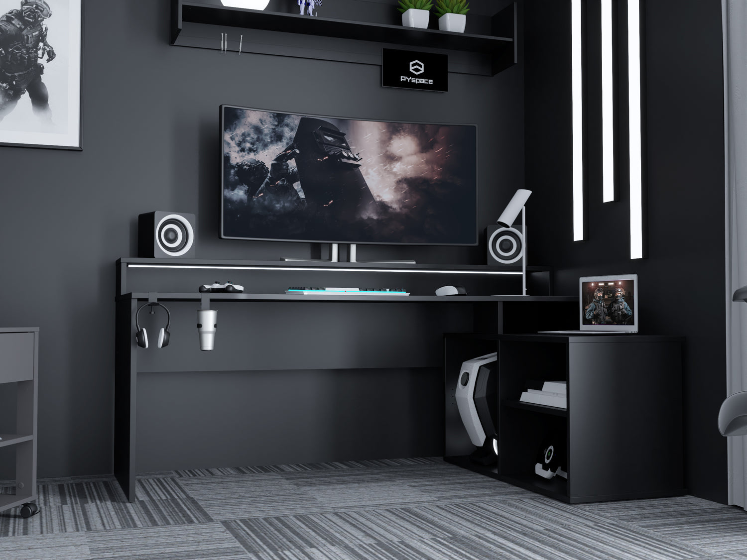 Oczywiście w pokoju prawdziwego gracza, nie możemy zapomnieć o szarym kontenerku na kółkach z szufladą, który może jeździć z Tobą po całym pokoju, w zależności od tego, gdzie dokładnie go potrzebujesz! Zwróć uwagę, że on nie jest czarny! Jest pokryty prawdziwie szlachetną szarością, która nieziemsko komponuje się z czarnym wykończeniem jakie zastosowaliśmy tworząc czarny pokój gamingowy z białym oświetleniem.