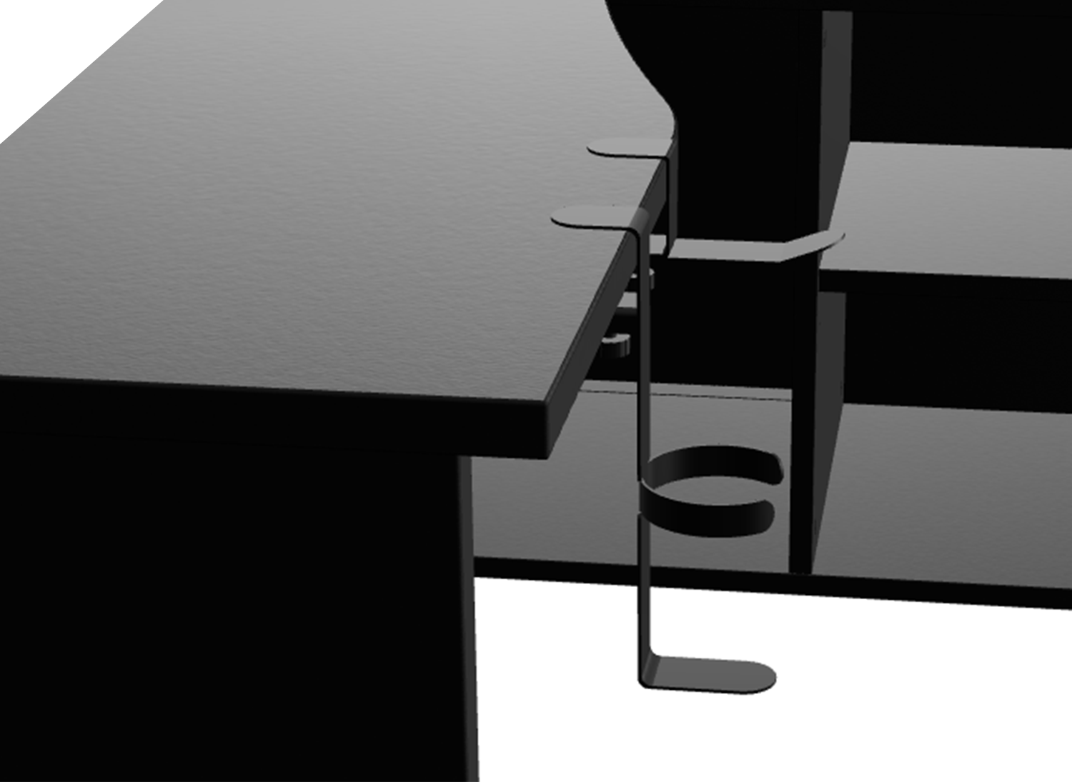 Uwolnij dodatkową przestrzeń na blacie roboczym, dzięki wykorzystaniu półki na monitor, montowanej do blatu biurka.