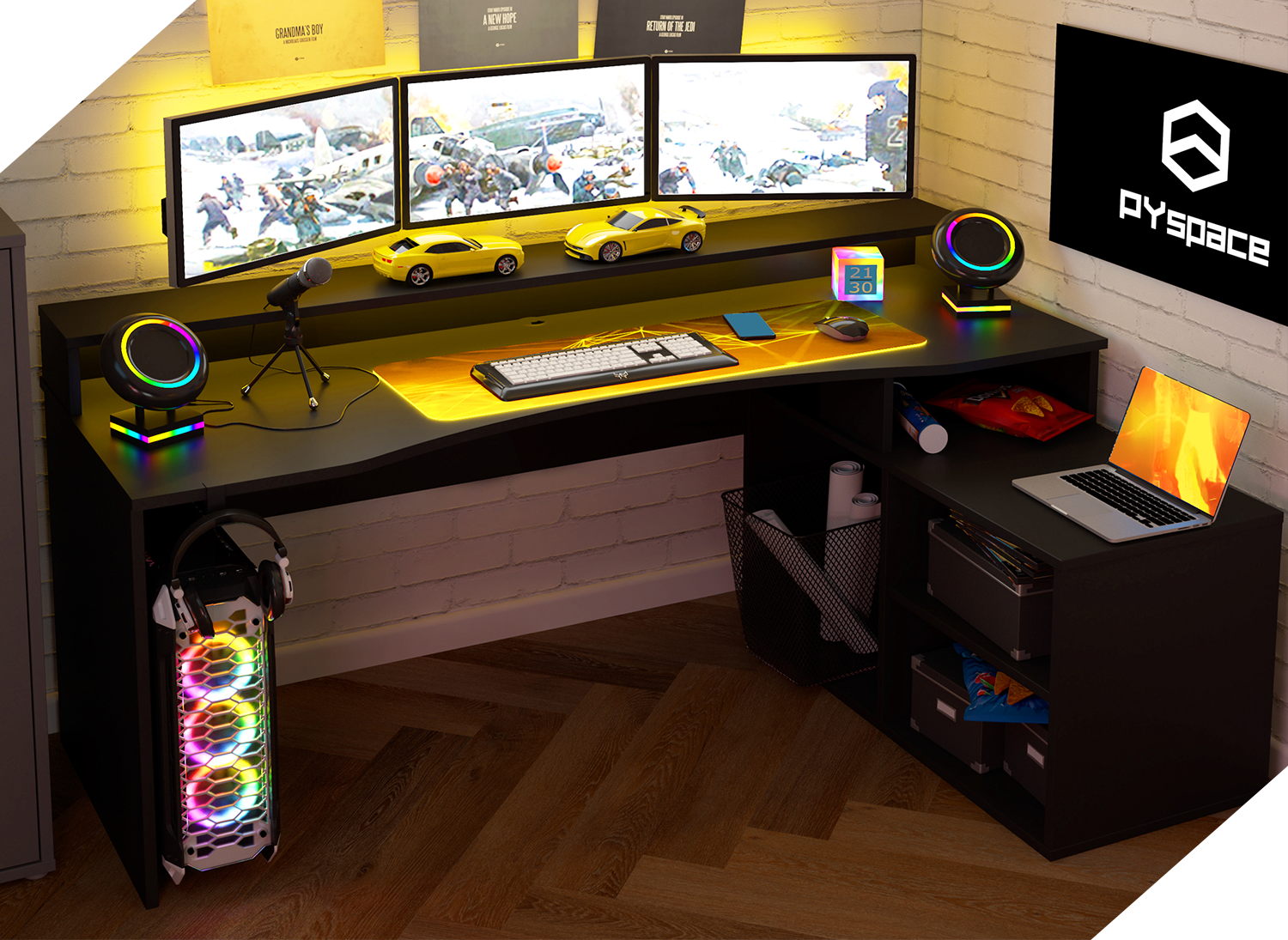 - Nastrojowe wielobarwne oświetlenie LED, dzięki któremu możesz w pełni dostosować atmosferę wokół biurka do swojego nastroju i preferencji. Wybierz spośród szerokiej gamy kolorów i efektów świetlnych.