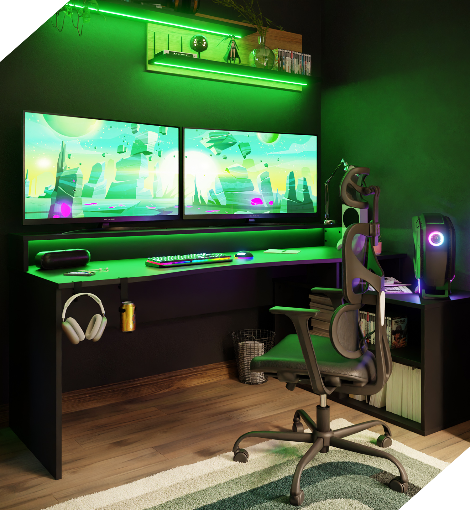 Chcesz stworzyć cały gaming room? Wybierz pozostałe meble z naszej oferty. Łatwo dopasujesz je designem oraz skompletujesz zestaw idealny. Jeżeli potrzebujesz inspiracji, udostępniamy pomysły na wystrój oraz aranżację w zakładce INSPIRACJE. Jeżeli potrzebujesz pomocy w wyborze, skontaktuj się z nami na czacie, nasi konsultanci chętnie pomogą z wyborem najlepiej dopasowanym do Twoich potrzeb.