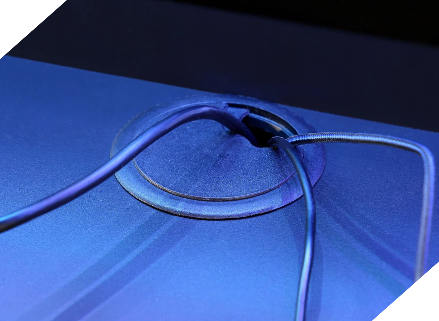 Mając na uwadze Twoje potrzeby biurko gamingowe SUPERNOVA214 wyposażyliśmy w funkcjonalne przepusty kablowe. Dodatkowo w tylnej części blatu znajduje się wycięcie ułatwiające poprowadzenie niechcianych kabli z blatu. Dzięki temu rozwiązaniu utrzymasz porządek w okablowaniu, a kable będą zabezpieczone przed uszkodzeniami.