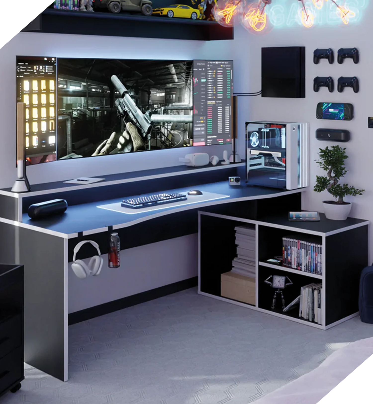 Trwały laminat na całej powierzchni biurka, chroni go przed zarysowaniami. Konstrukcja blatu, który składa się z jednego całościowego elementu sprawia, że nie posiada on uskoków, a gra jest wyjątkowo komfortowa.