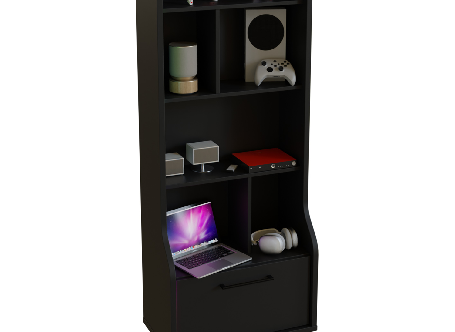 Duży czarny regał młodzieżowy LED RGB szufladą HYPERNOVA711