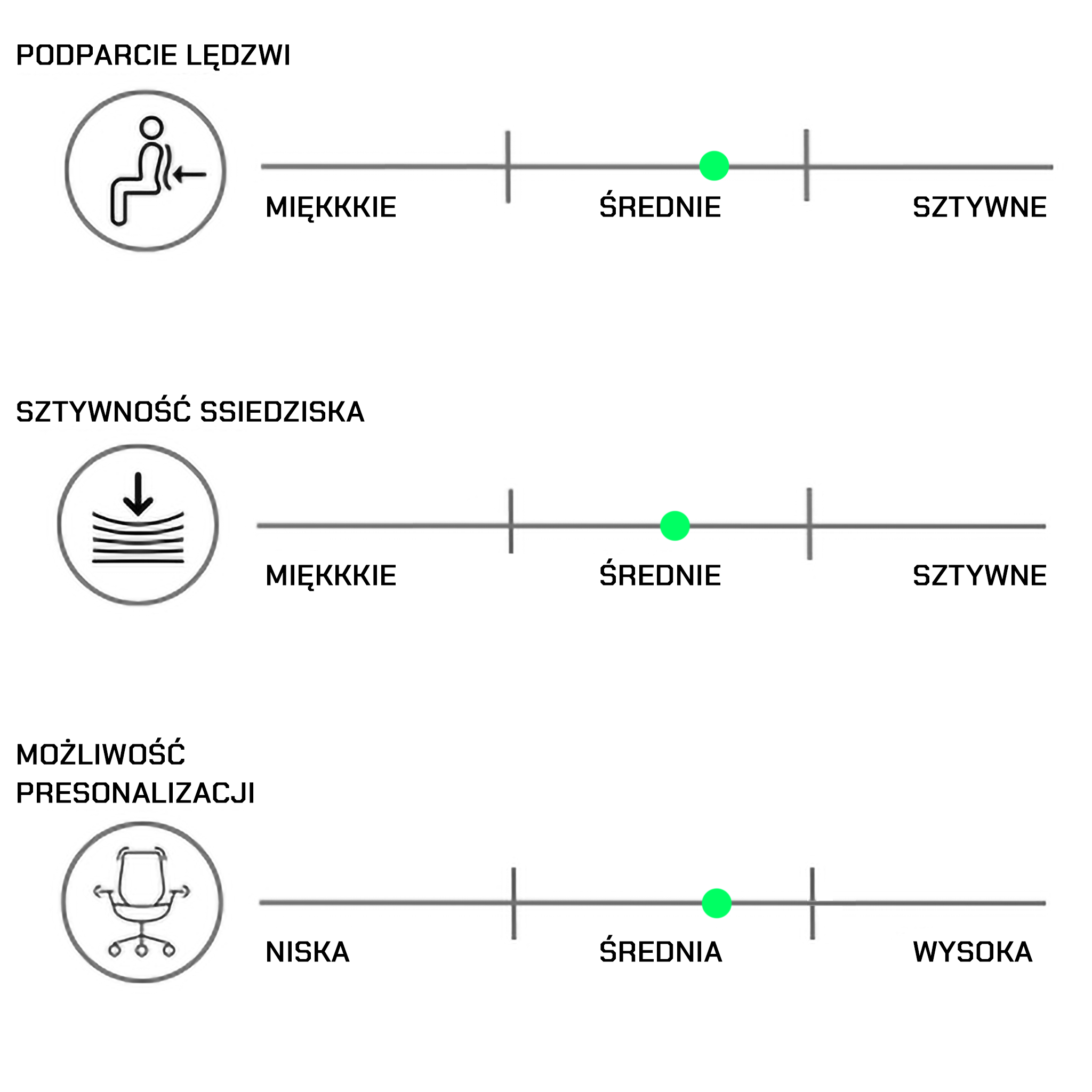 - Oparcie zostało podzielone na sekcję górną oraz sekcję dolną. Dzięki ergonomicznemu wyprofilowaniu odcinka lędźwiowego zapomnisz czym jest ból pleców.