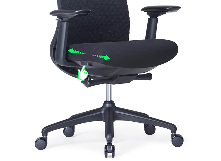 - Siedzisko fotela wyposażone jest w regulację głębokości.