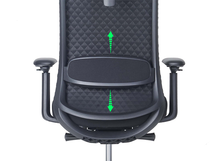 - Wyprofilowany odcinek lędźwiowy wyposażony w regulację wysokości zapewnia odpowiednie wsparcie pleców.
