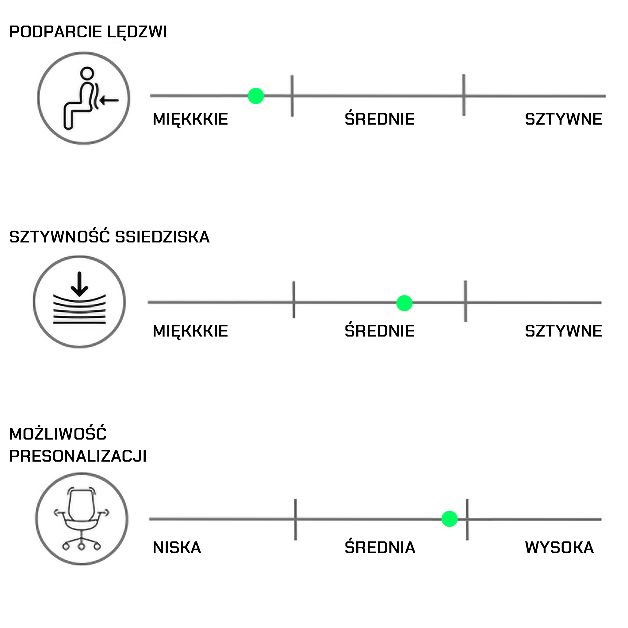 Funkcja ta jest szczególnie przydatna użytkownikom o najwyższych wymaganiach względem komfortu podczas pracy. Umożliwia ona dopasowanie fotela do użytkownika względem budowy i proporcji ciała sprawiając, że SPACEDUST304 staje się miejscem, którego nie będziesz chciał opuszczać.