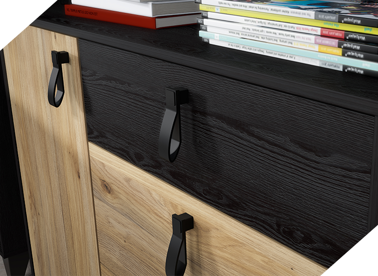 Komoda BLACKDWARF221 stworzona z pełną dbałością o Twoją wygodę. Wyposażona w poręczne uchwyty, które zapewnią Ci komfort użytkowania, jak również pomagają w zachowaniu eleganckiego wyglądu.