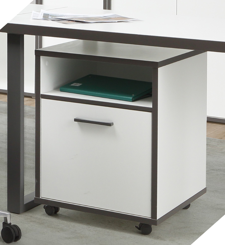 Kontenerek pod biurko LUNARTEK111 - biało-szary jest idealnym partnerem dla Twojego biurka LUNARTEK w kolorze bieli i szarości. Łącząc kontenerek z biurkiem z tej serii, stworzysz spójną i przyjemną dla oka aranżację.