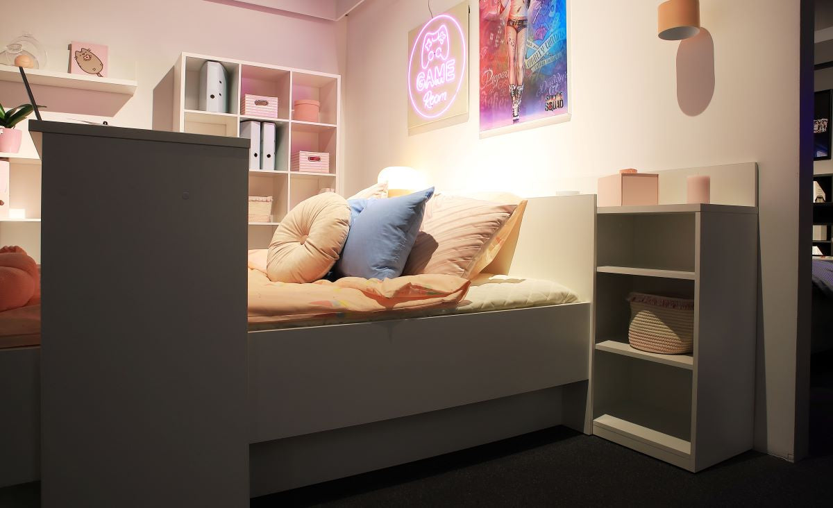 Twoje młodzieżowe łóżko gamingowe możesz sparować z przesuwanym stolikiem pod laptopa, dzięki któremu możesz grać, leżąc wygodnie!