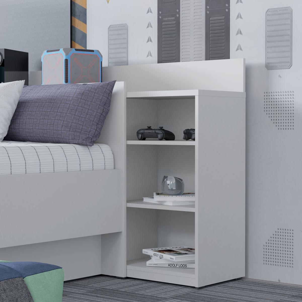 Łóżko białe młodzieżowe - rama z zagłówkiem i półkami