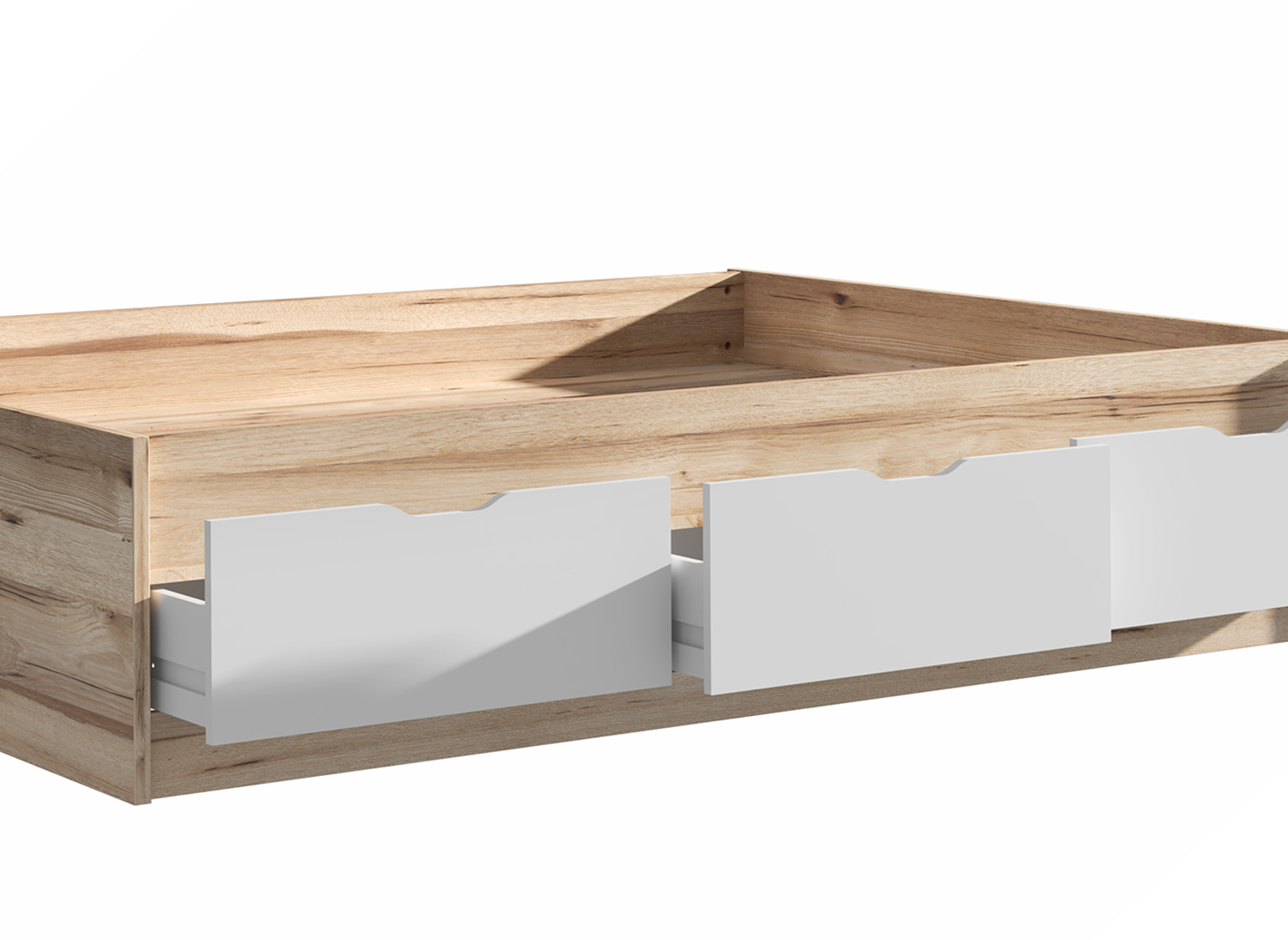 - Funkcjonalność i Praktyczność: Łóżko młodzieżowe to nie tylko stylowe miejsce do snu, ale także doskonałe rozwiązanie przechowawcze. Trzy pojemne szuflady zapewniają dodatkową przestrzeń na przechowywanie różnych przedmiotów, co jest szczególnie przydatne w pomieszczeniach młodzieżowych, gdzie organizacja przestrzeni jest kluczowa.