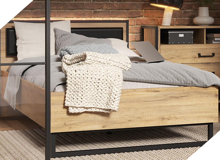 - Tapicerowany stylowy zagłówek, który razem z drewnianą ramą tworzy unikalne, nowoczesne połączenie, świetnie pasując do reszty kolekcji ZEMYA. Razem stworzą sypialnię Twoich marzeń.