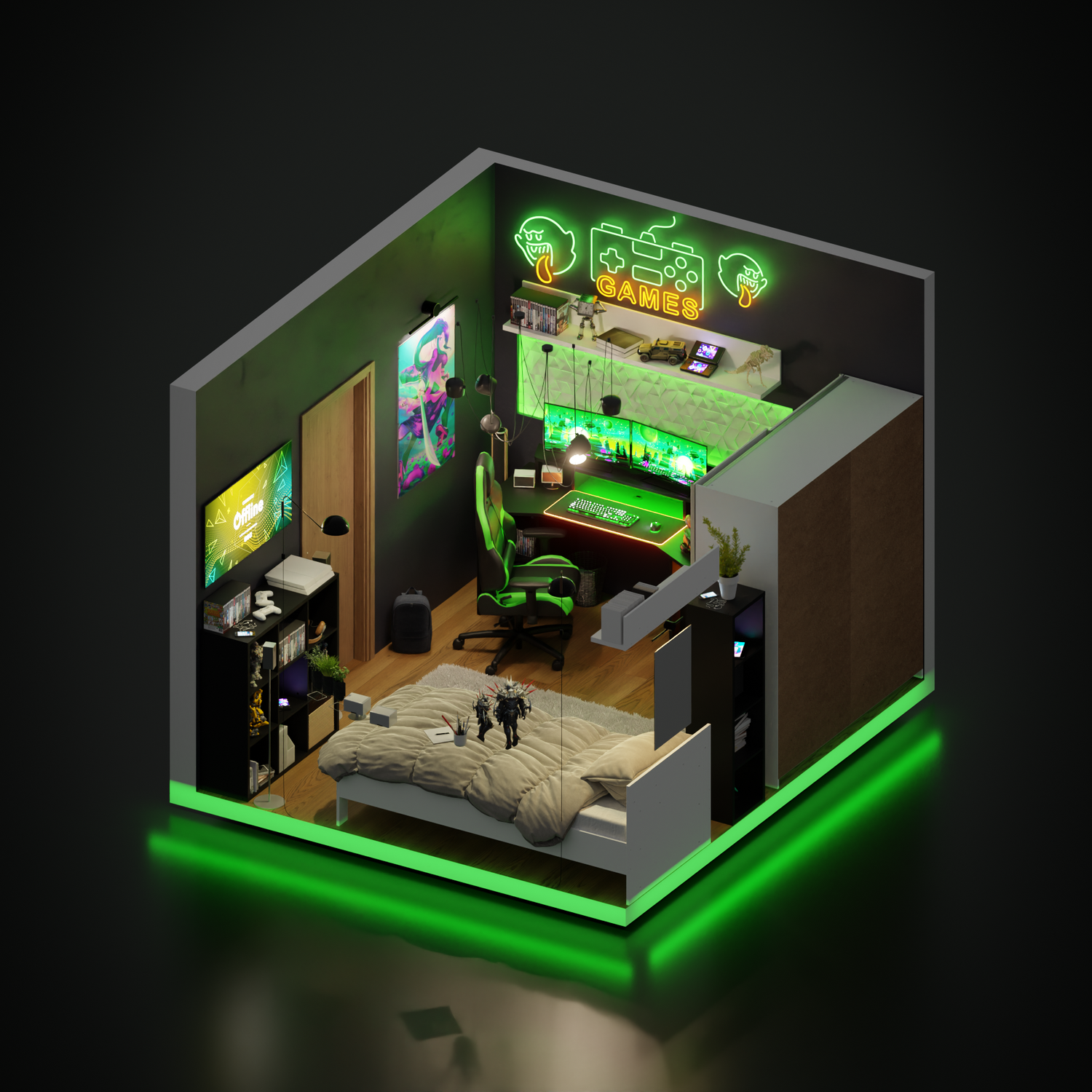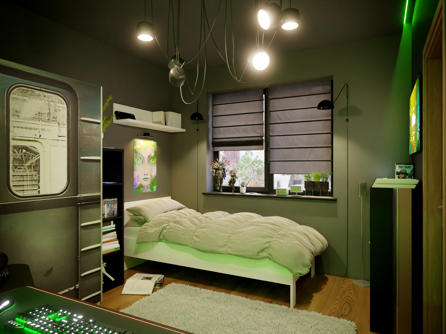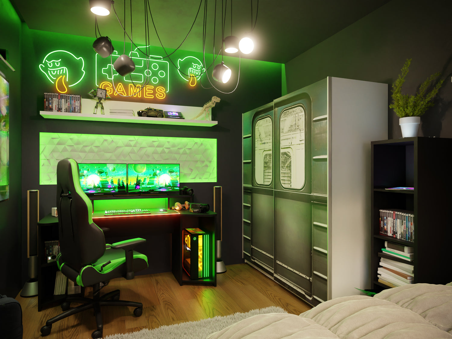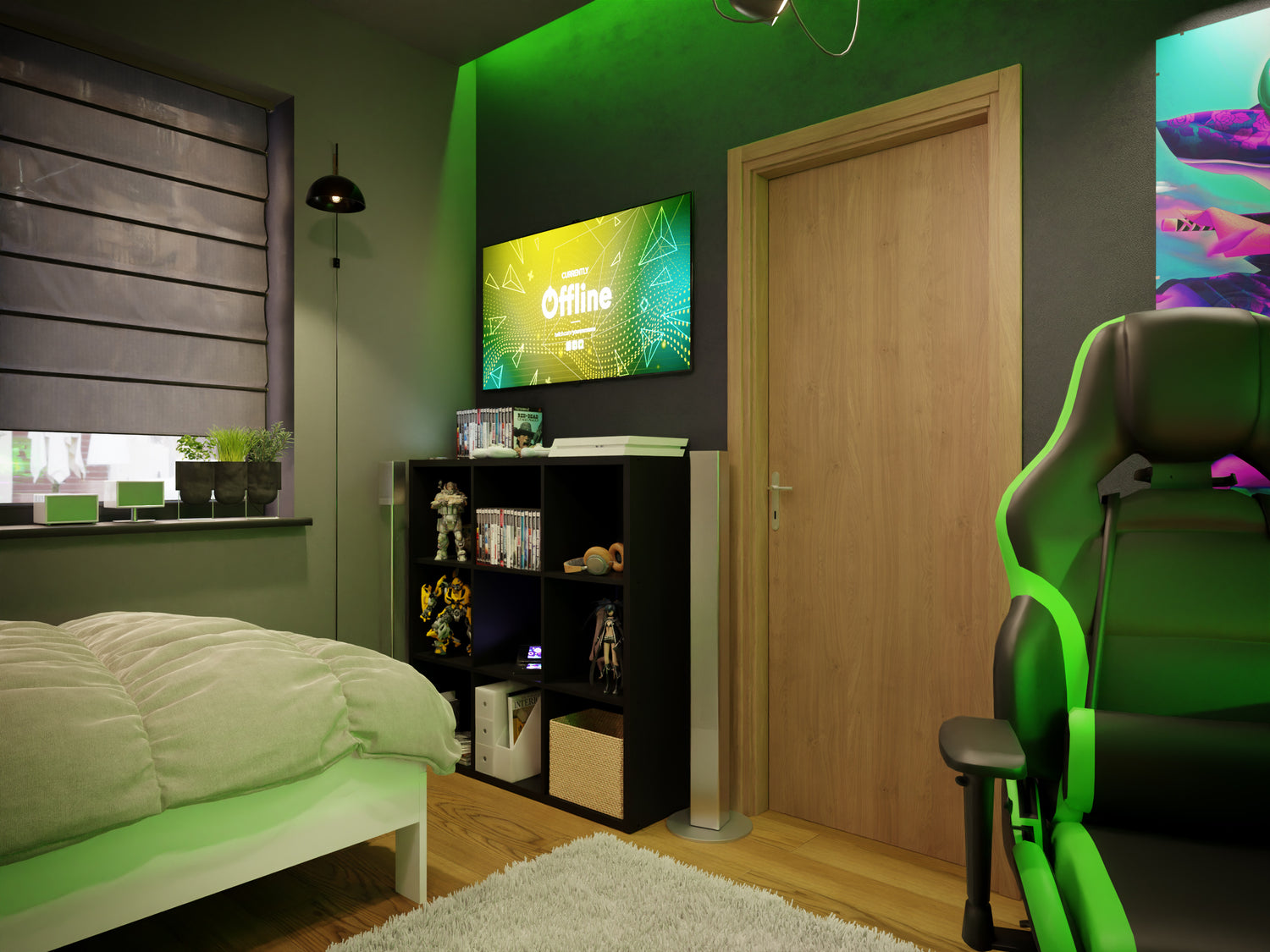 wszystko dobrze przemyśleć, wymierzyć, poustawiać, przystroić i już! Masz swój własny, niepowtarzalny i niesamowicie przytulny mały czarno-zielony pokój gamingowy!