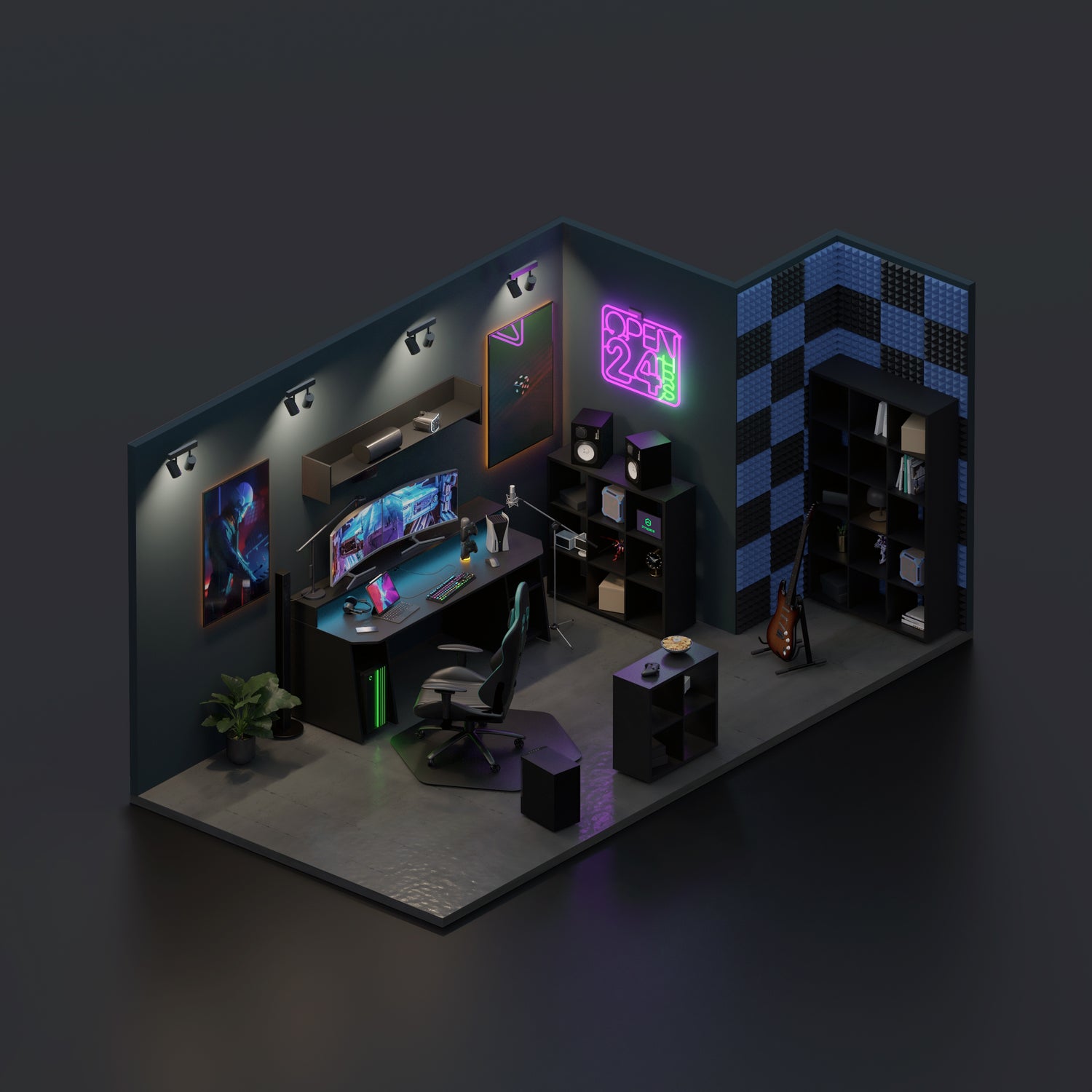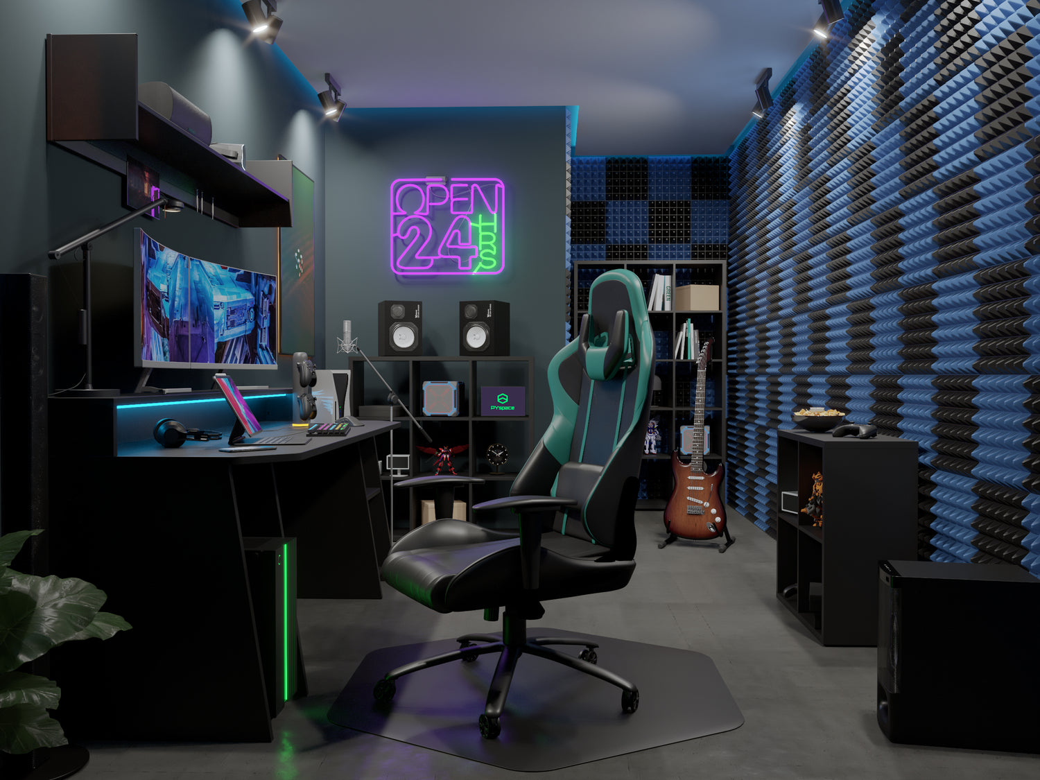 Jak widzisz na niedużej przestrzeni możesz stworzyć idealne stanowisko gamingowe, w kolorystce przypominającej gwiazdę śmierci, z której sam Vader byłby dumny. Pamiętaj, żeby dorzucić dodatki związane nie tylko z grami, ale również z Twoją pasją. Zastosowanie dodatkowego oświetlenia LED oraz paneli akustycznych podkręci wibe twojego nowego pokoju