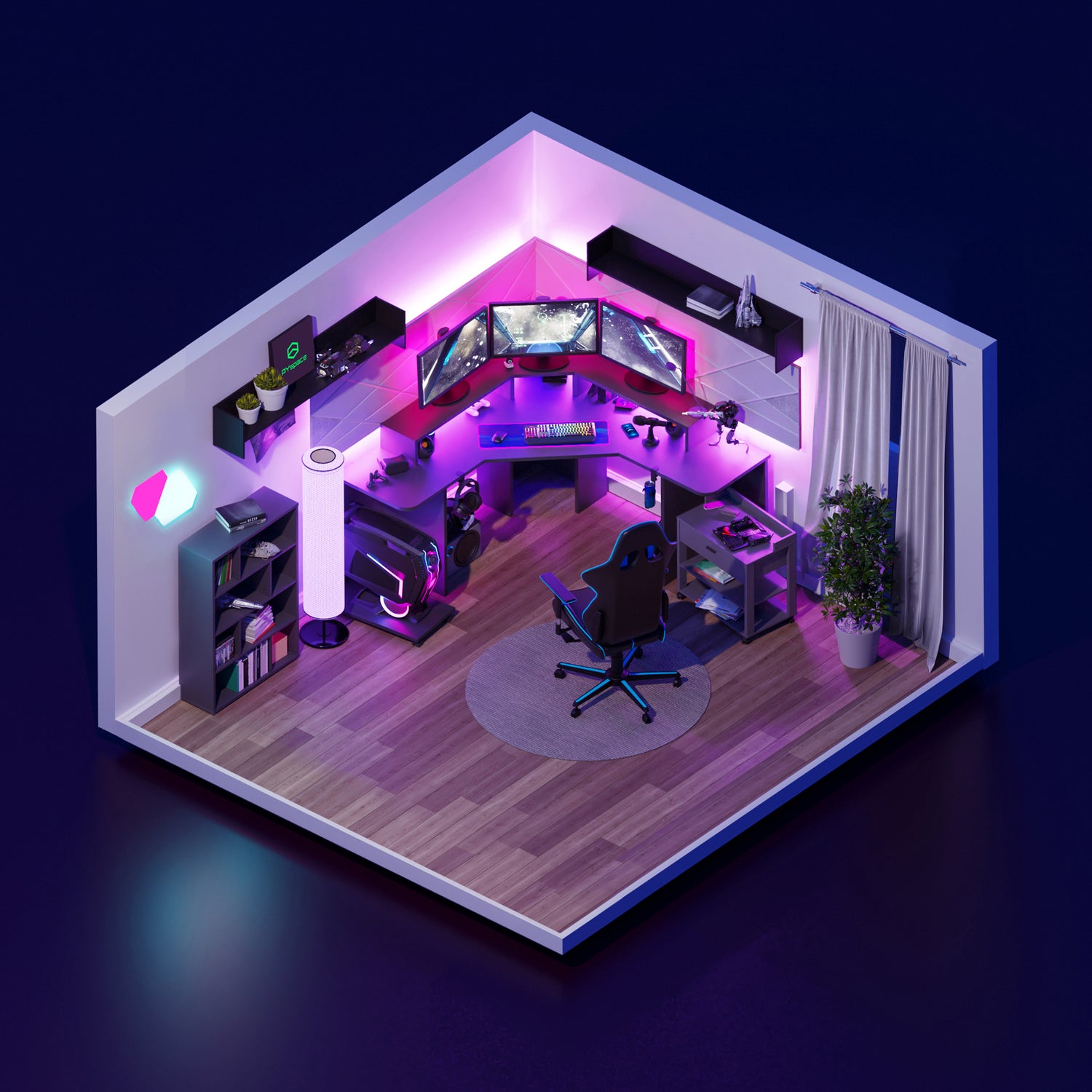 Jak widzisz na naszej wizualizacji, nawet w małym pomieszczeniu można zrobić prawdziwy gamingroom, wyposażony we wszystkie niezbędne elementy!