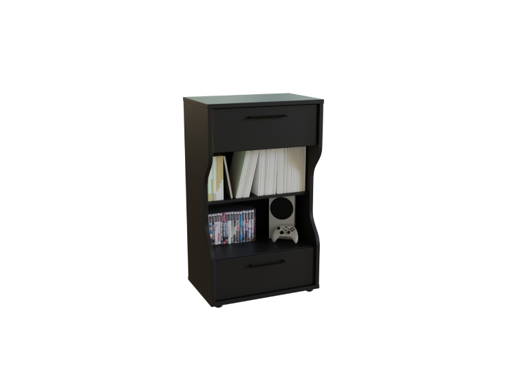 Mały regał młodzieżowy LED RGB z szufladami HYPERNOVA211 - czarny