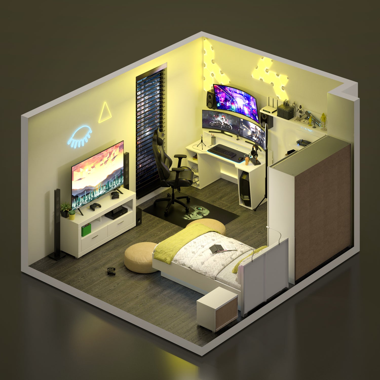 Podsumowując całą inspirację jaką przygotowaliśmy dla Ciebie, jest to idealny pokój dla gracza, który lubi połączyć grę na konsoli, na komputerze, ale też pracę i naukę.