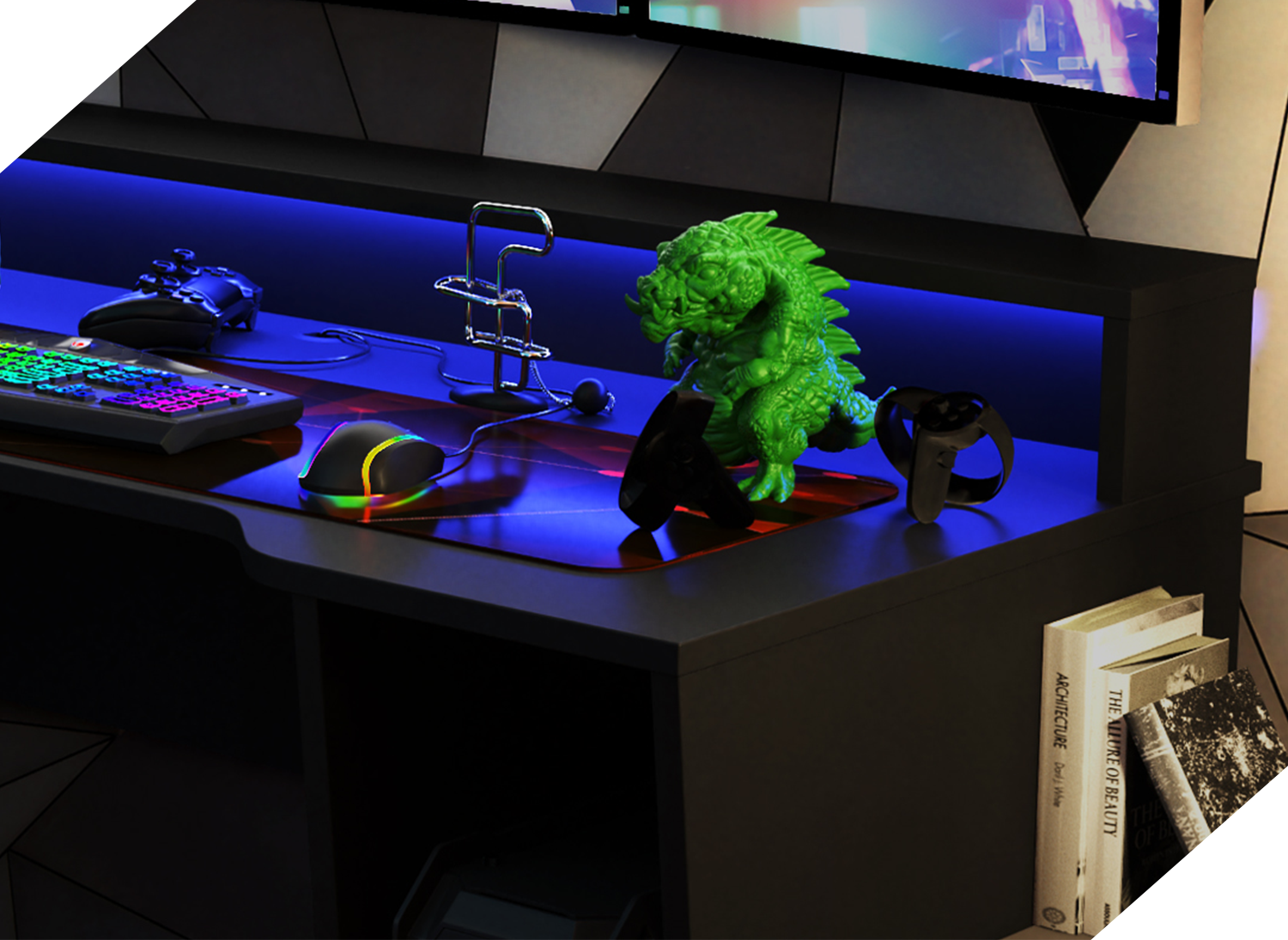 - Zastosowanie laminatu na blacie biurka gamingowego SUPERNOVA211 to niezawodna ochrona przed zarysowaniami, zapewniająca trwałość.