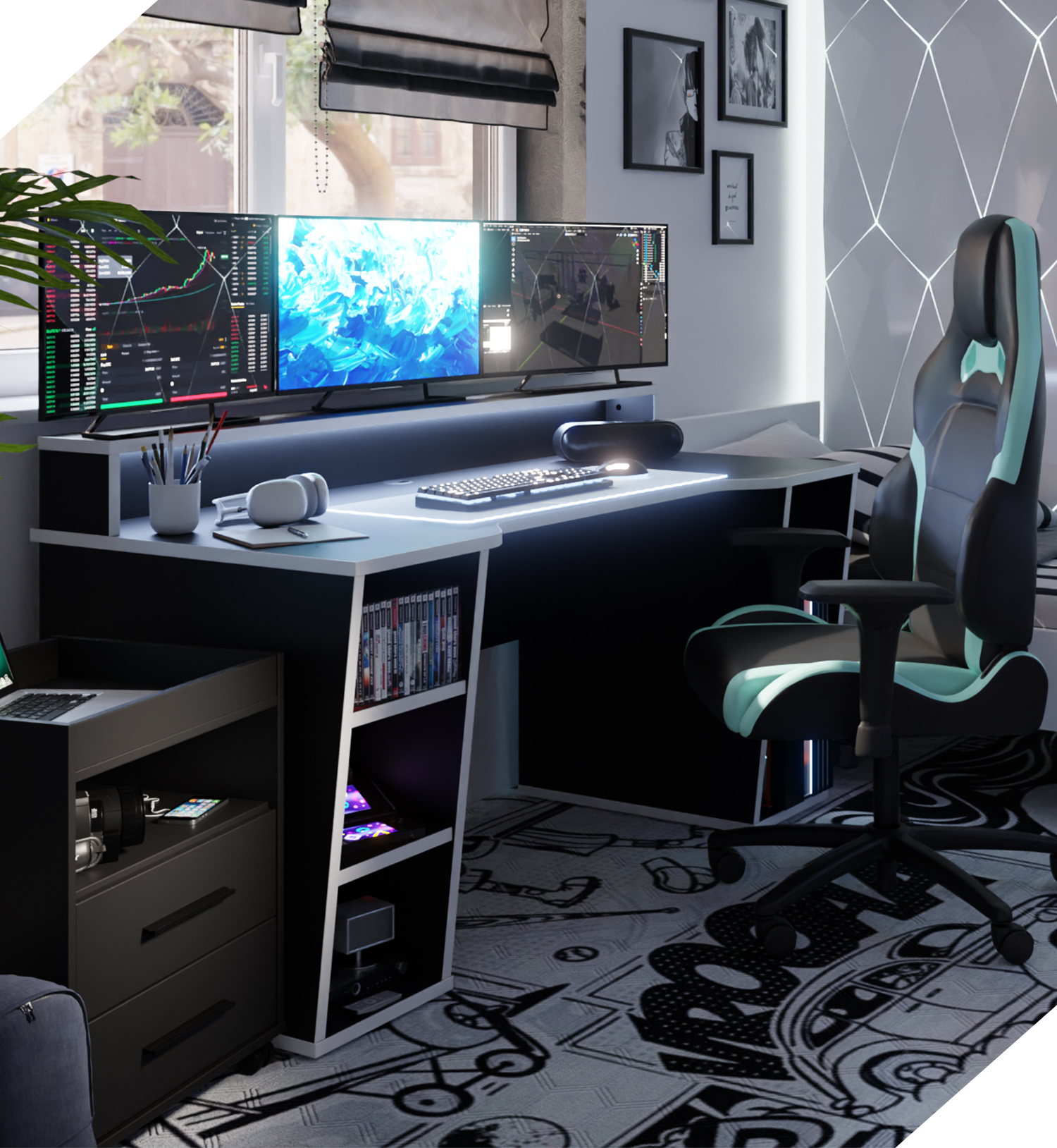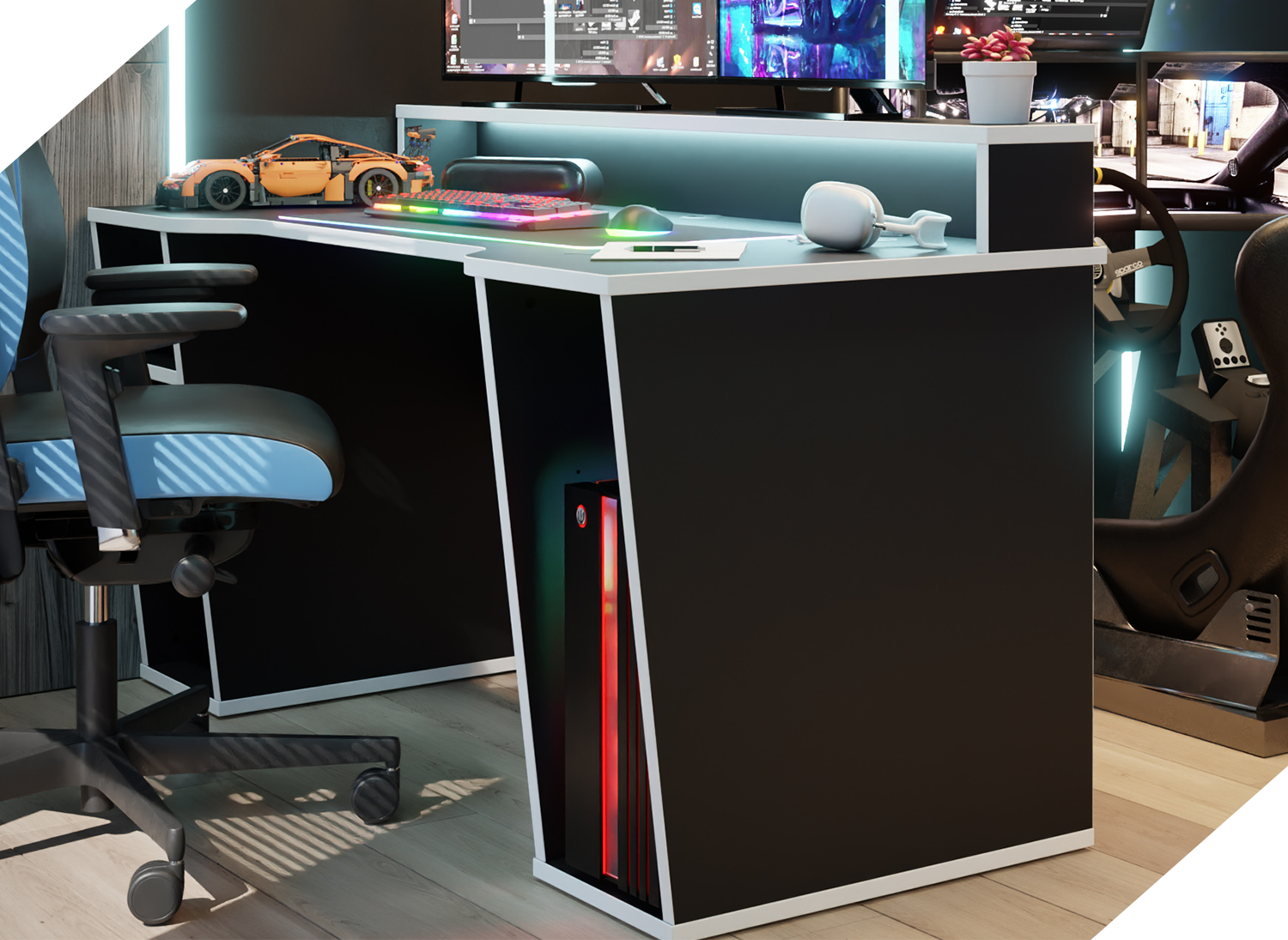 Biurko gamingowe SUPERNOVA211 LED - czarno-białe