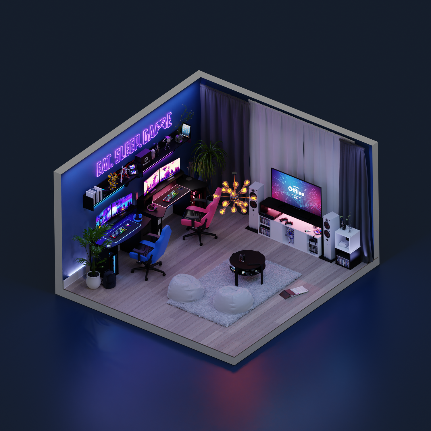 Właśnie tak wyobrażaliśmy sobie wymarzony pokój gamingowy dla pary, to w tym pomieszczeniu będziecie mogli uciec od życia codziennego i oddać się swojej ulubionej rozrywce. Pamiętajcie tylko o jedynym, to tylko gra, a wy jako para zawsze gracie do jednej bramki.