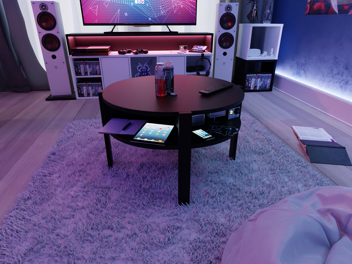 Właśnie tutaj! Czarny okrągły stolik sprawdzi się do tego perfekcyjnie! Wiemy, że rozgrywki w waszym pokoju gaminwogym dla pary czasami są na tyle emocjonujące, że aż zasycha w gardle! Poza tym, trzeba paiętać o nawadnianiu. Chyba nie chcecie skończyć jak ta zapomniana roślinka na parapecie, która może niedługo ze swoich popiołów odrodzi się jak feniks?