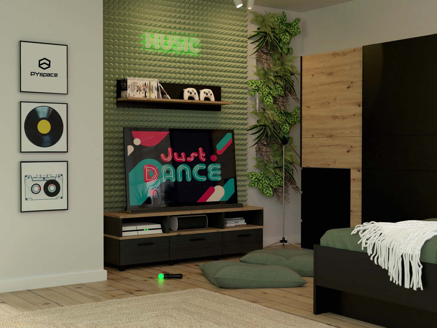 Czasami wszyscy mamy ochotę odejść od komputera, wyciągnąć nogi, wychillować i włączyć sobie konsolę. Niezależnie od tego czy to gra przygodowa, czy gra on-line ze znajomymi tu możemy się bardziej wyluzować. Jak widzisz pokój dla dziewczyny został stworzony tak, że możesz się albo wygodnie rozsiąść na poduszkach do gry, lub grać w swoją ulubioną grę z wygodnego łóżeczka. Nie narzucamy, jak masz grać, ponieważ może Twoimi ulubionymi grami, są gry muzyczno-taneczne, więc nie czekaj tylko tańcz! Dodatkowo, dzięki wykorzystaniu w wizualizacji szafki RTV w kolorze czerni i dębu Twojej konsoli będzie równie wygodnie!