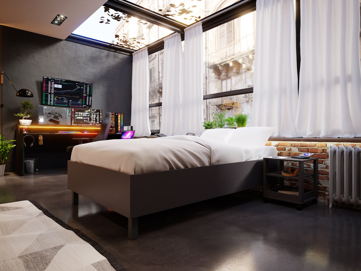 Pół żartem, pół serio oczywiście. Zdajemy sobie sprawę z tego jak bardzo hprecovery jest ważne nie tylko dla prawdziwego gracza, ale również dla gracza, który każdego dnia łączy swoją pasję z nauką oraz pracą! To jest dopiero wyzwanie, sam spróbuj 😉 Oczywiście, aby nasze baterie dobrze się naładowały potrzebujemy wygodnego łóżka, dlatego w naszej inspiracji wykorzystaliśmy łóżko szare – rama. Gwarantujemy, że tylko przyłożysz głowę do poduszki a już będziesz się witał z Morfeuszem. A jakby Ci się zdarzyło w nocy przebudzić po szklankę wody, Twój szary kontenerek niski na kółkach ją dla Ciebie przywiezie i przetrzyma.