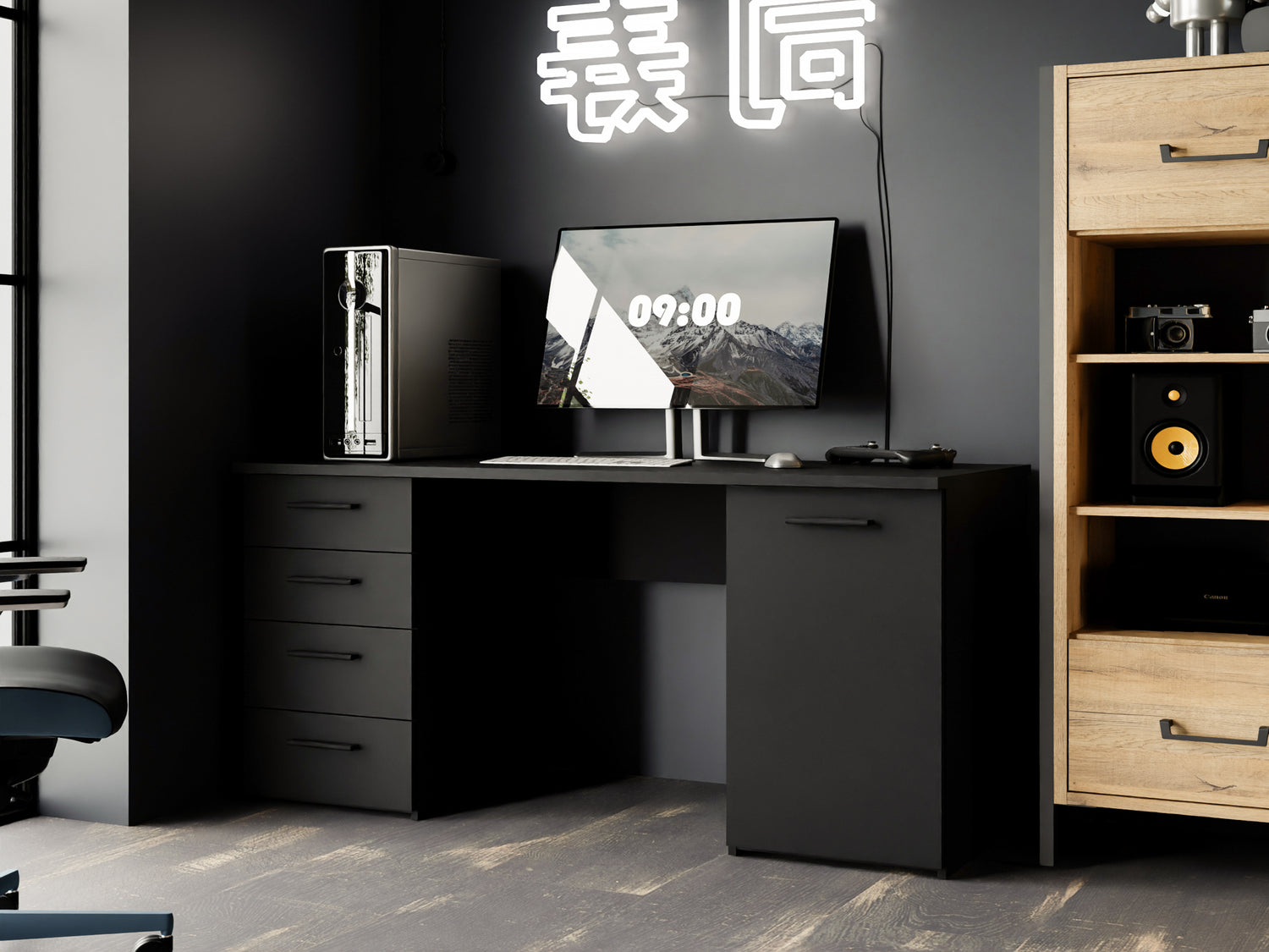 z gamingowych aspektów tego pokoju? O, co to, to nie. Po prostu zostawiliśmy deser na koniec! Do sedna – o Wasze gamingowe potrzeby zadba czarne biurko ARCALIS926. W szufladach i szafce zmieszczą się wszystkie rzeczy, które muszą znajdować się na wyciągnięcie ręki! Dostawiliśmy też fotel gamingowy XILIUM, bo liczy się dla nas wygoda i zdrowie Waszych pleców.