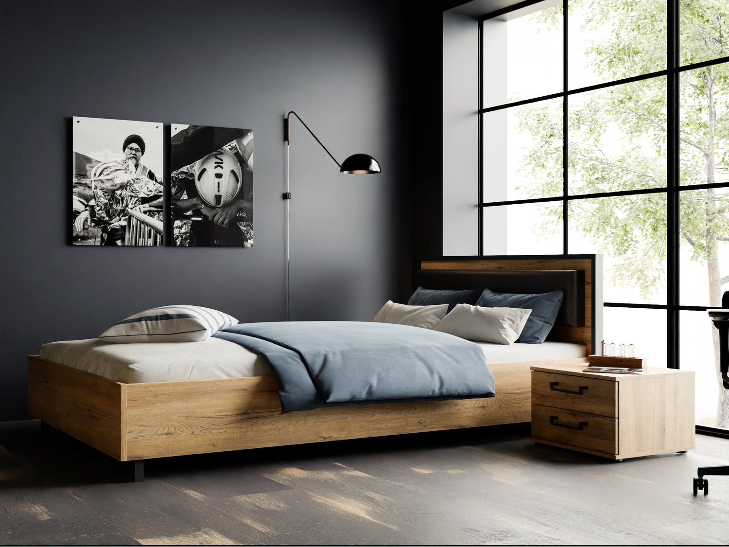 Dzięki stonowanej kolorystyce oraz klasycznym połączeniom brązu i czerni, ten pokój będzie idealną strefą do relaksu! Właśnie dlatego, zaczniemy od najważniejszego jej punktu – łóżka ZEMYA1122. Lekko rustykalny wygląd stelażu zachęca do praktykowania zdrowego spanka po ciężkim dniu. Tuż obok łóżka postawilibyśmy, rzecz jasna, szafkę nocną w kolorze drewna ZEMYA011, na której znajdą swoje miejsce wszystkie itemy, które zechcecie mieć pod ręką.