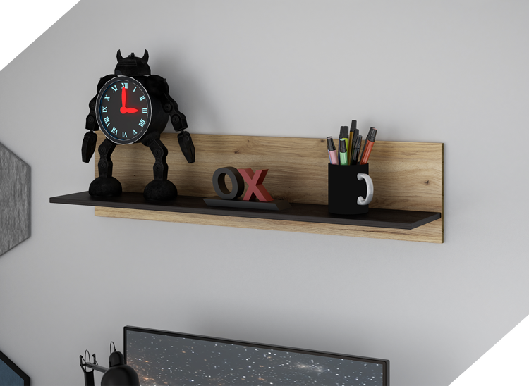 Półka w kolorze czerni i drewna dębowego, została zaprojektowana w stylu modern loft. Jeżeli szukasz mebla, który będzie praktyczny, ale również będzie posiadał estetykę wykonania miłą dla oka, wybierz BLACKDWARF01 i pozwól spełnić wszystkie Twoje oczekiwania