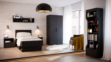 Półki do szafy przesuwnej HYPERNOVA727 są w pełni kompatybilne z czarną szafą przesuwną młodzieżową HYPERNOVA722. Dzięki dodatkowym półkom lepiej rozplanujesz rozkład swojej szafy i zapewnisz sobie wygodę bardziej efektywnego korzystania z niej.