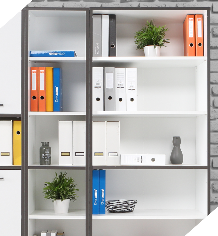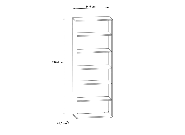 - Uniwersalny design, dzięki któremu Twój regał dopasuje się do reszty mebli w pomieszczeniu, tworząc razem z nimi spójną i przyjemną dla oka aranżację.
