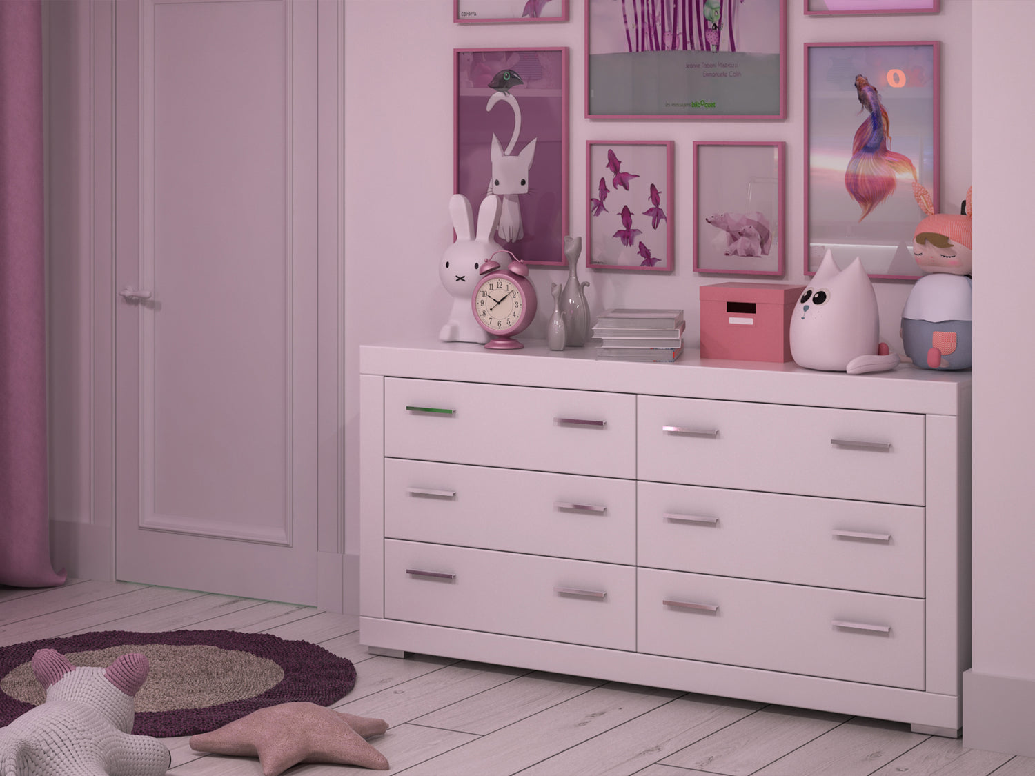 Gdzieś trzeba schować wszystkie skarby, a pomoże Ci w tym duża komoda biała z sześcioma szufladami. Skarpetki, kable czy cały sprzęt do streamowania… Sześć szuflad zmieści to wszystko!