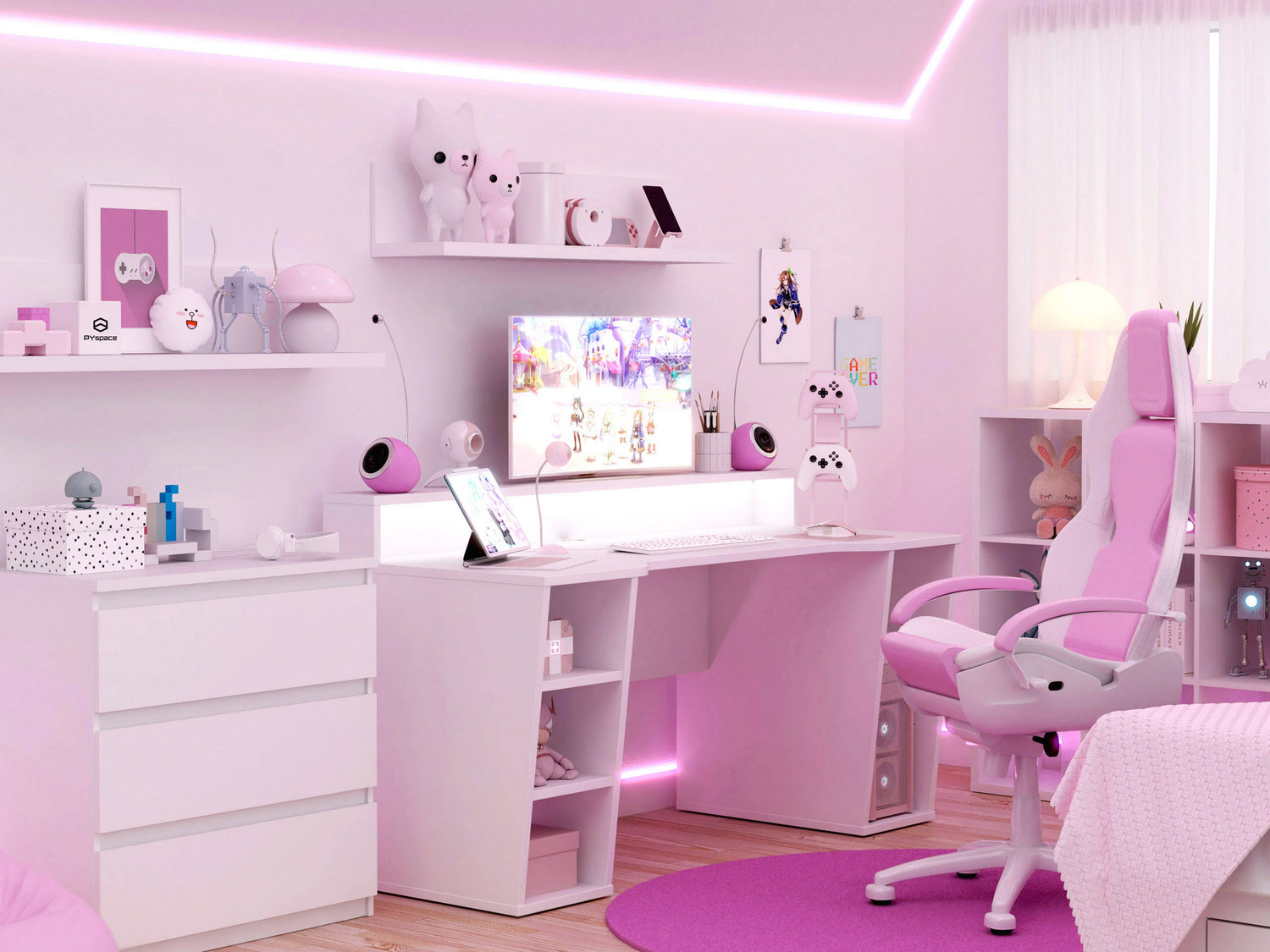 My widzimy aranżację pokoju, przygotowaną perfekcyjnie dla prawdziwej gamerki, która kochanie tylko gry, turnieje esportowe i pokonywanie kolejnych leveli! Uwielbia też róż, ma ogromną wiarę w siebie i wie, że w każdej dziedzinie swojego życia jest niepokonana! Are you ready to take on the world?! GO GIRL! YOU CAN DO THAT!