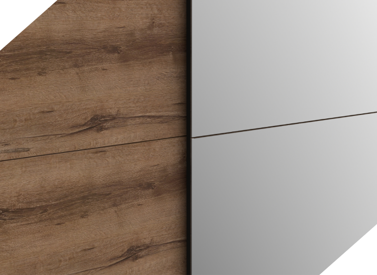 - Klasyczny i elegancki design. Przesuwna szafa w kolorze dębu szlachetnego, uzupełni Twoje wnętrze i nada mu charakteru, dzięki stylowemu połączeniu dekorów.