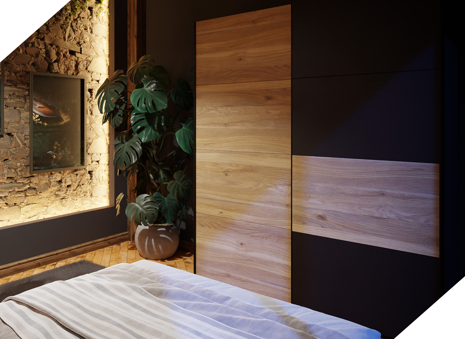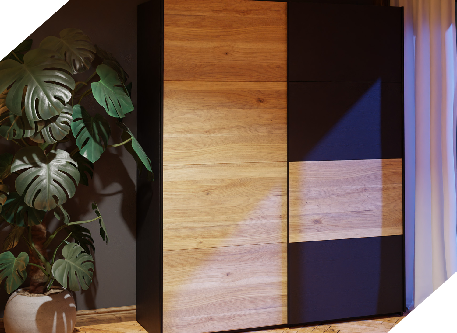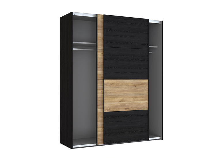 Dobrze zaprojektowana konstrukcja oraz jej wykonanie to najważniejszy element, każdego mebla, który ma spełniać oczekiwania komfortu korzystania. Szafa ubraniowa w kolorze czerni i drewna dębowego, posiada konstrukcję, dzięki której raz na zawsze zapomnisz o tym, że mebel może się ruszać w nieoczekiwanych momentach.