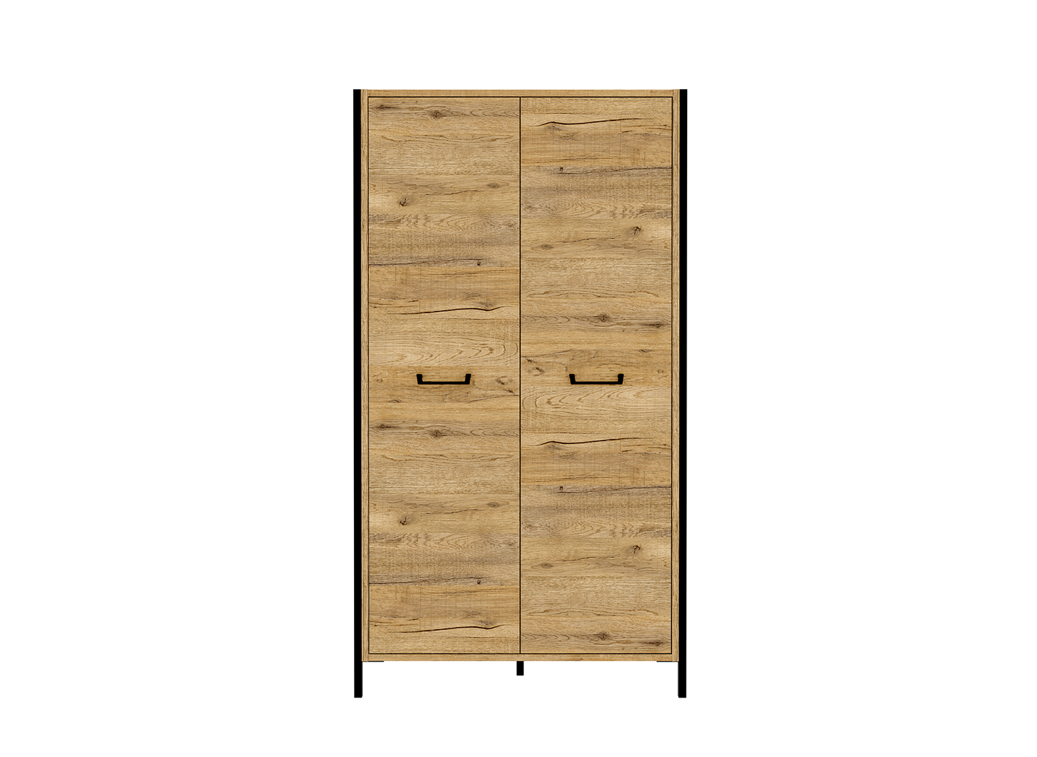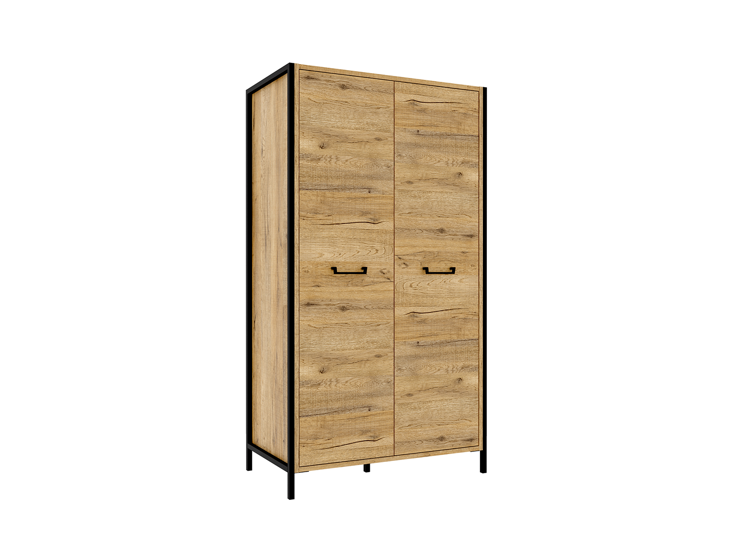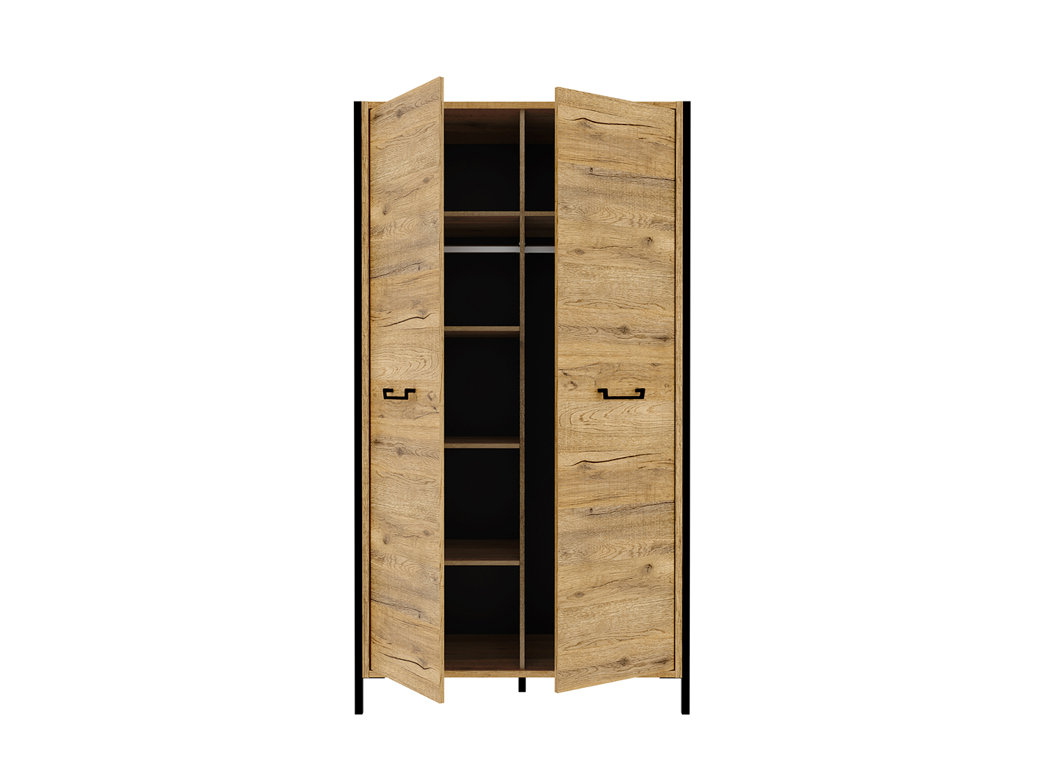 - Ciekawy, loftowy design przykuje uwagę każdego z Twojego gościa, a odważne połączenie koloru drewna dębowego i czarnego metalu podkreśli nowoczesny wygląd Twojego pomieszczenia, niezależnie od tego, gdzie wstawisz swoją nową szafę.