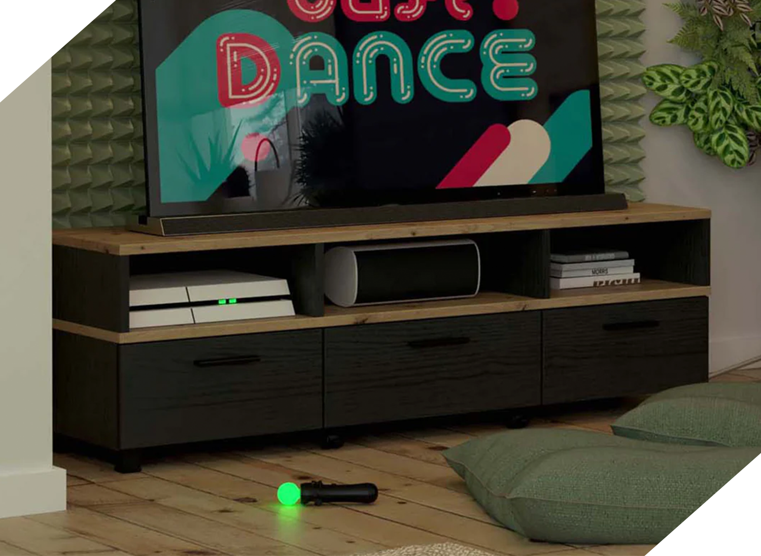 - Uniwersalność i wszechstronność Szafka RTV w kolorze czerni i dębu doskonale pasuje do różnych stylów i aranżacji wnętrz. Możesz ją umieścić w salonie, pokoju telewizyjnym czy sypialni, nadając pomieszczeniu elegancki i nowoczesny charakter.