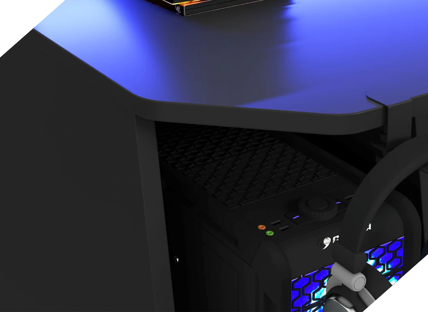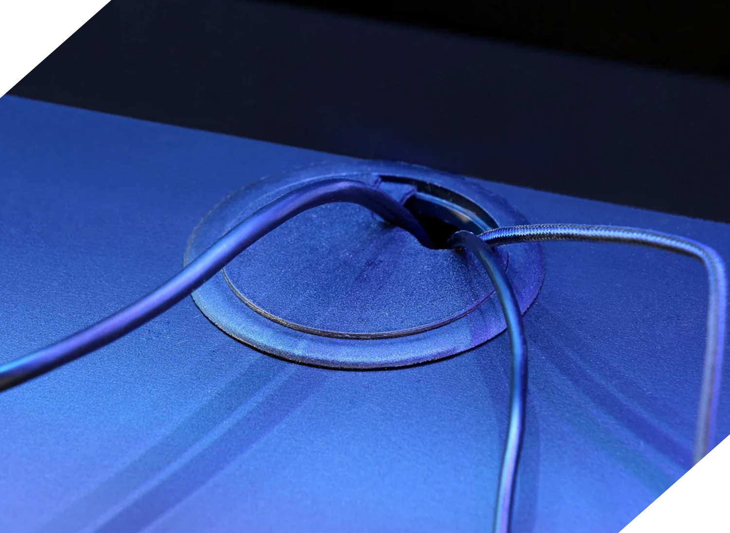 SUPERNOVA215została zaprojektowana z myślą o Twoich potrzebach, z funkcjonalnymi przepustami kablowymi. Dodatkowo z tyłu blatu znajduje się wycięcie ułatwiające odprowadzenie kabli z blatu. Dzięki takiemu rozwiązaniu okablowanie jest uporządkowane i zabezpieczone przed uszkodzeniem.